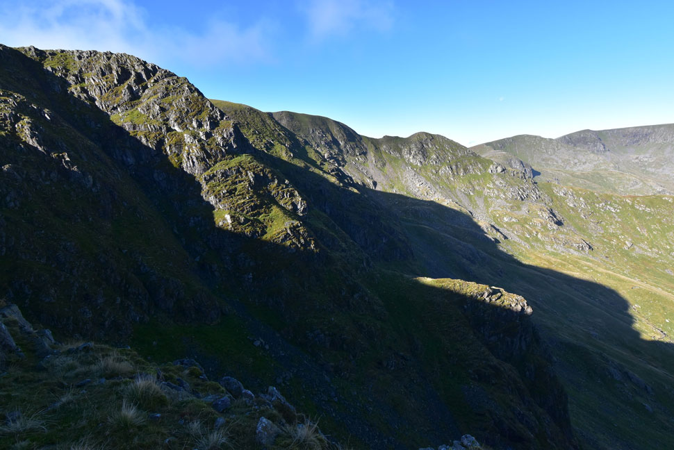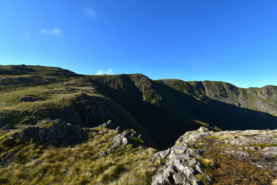 After a short distance I arrived at the head of Hutaple Crag and viewed the cliffs of Fairfield's north face. |