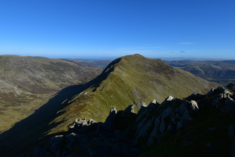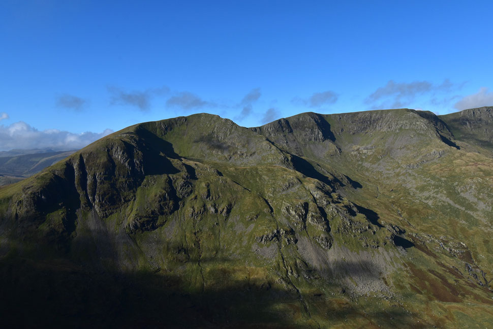 Focusing on Nethermost Pike East Ridge and Striding Edge. |
