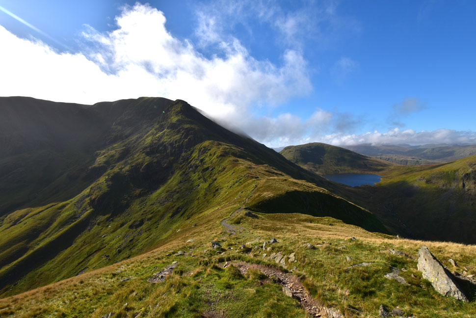 Looking back on Fairfield, Cofa Pike, Seat Sandal and Grisedale Tarn. |