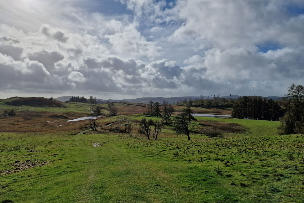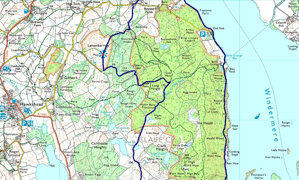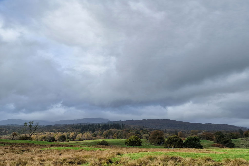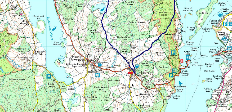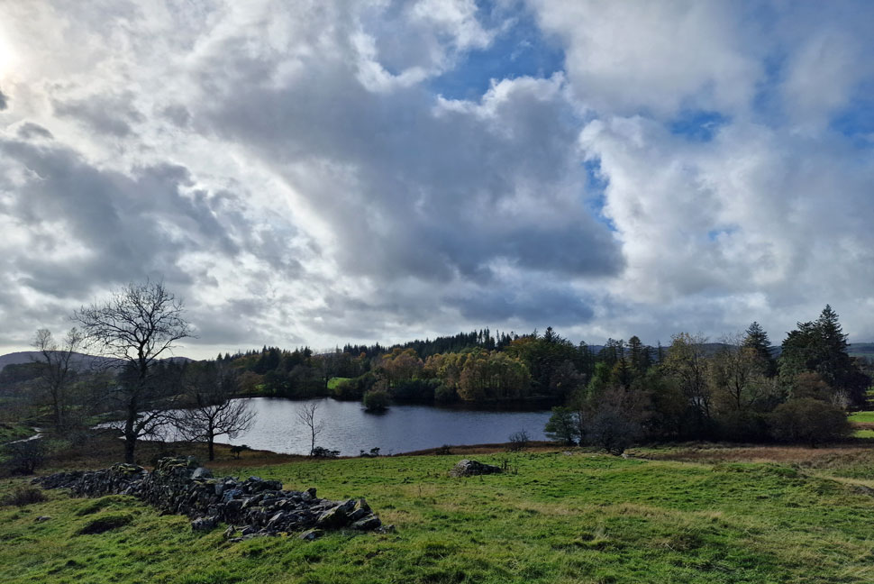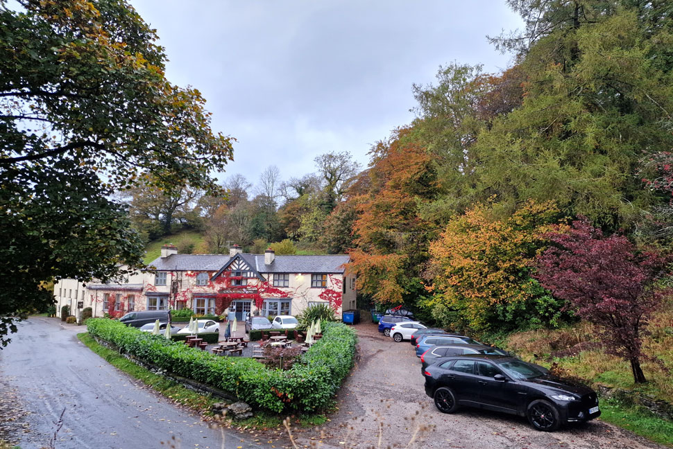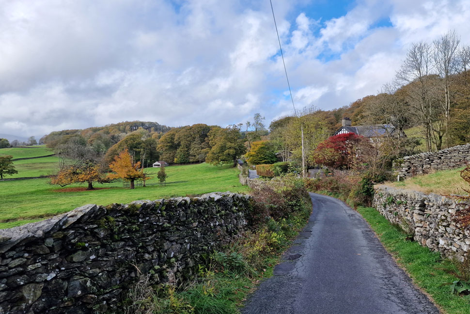 The lane descended back to Far Sawrey which seemed as quiet as we'd left it this morning with the exception of half a dozen mountain bikes leant outside the Cuckcoo Brow Inn whose owners looked over them from a nearby window. I'd stubbornly kept my waterproof jacket on throughout the day and was positively steaming when we arrived back at the village hall and I couldn't wait to take it off. We began our kit down as David puts Calva into his car who curled himself up into a ball on the back seat.