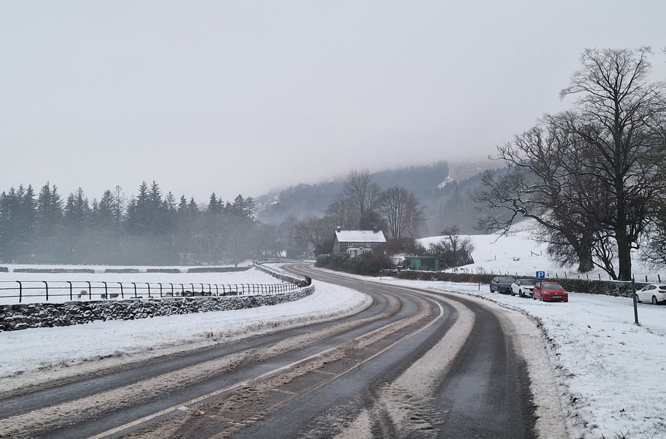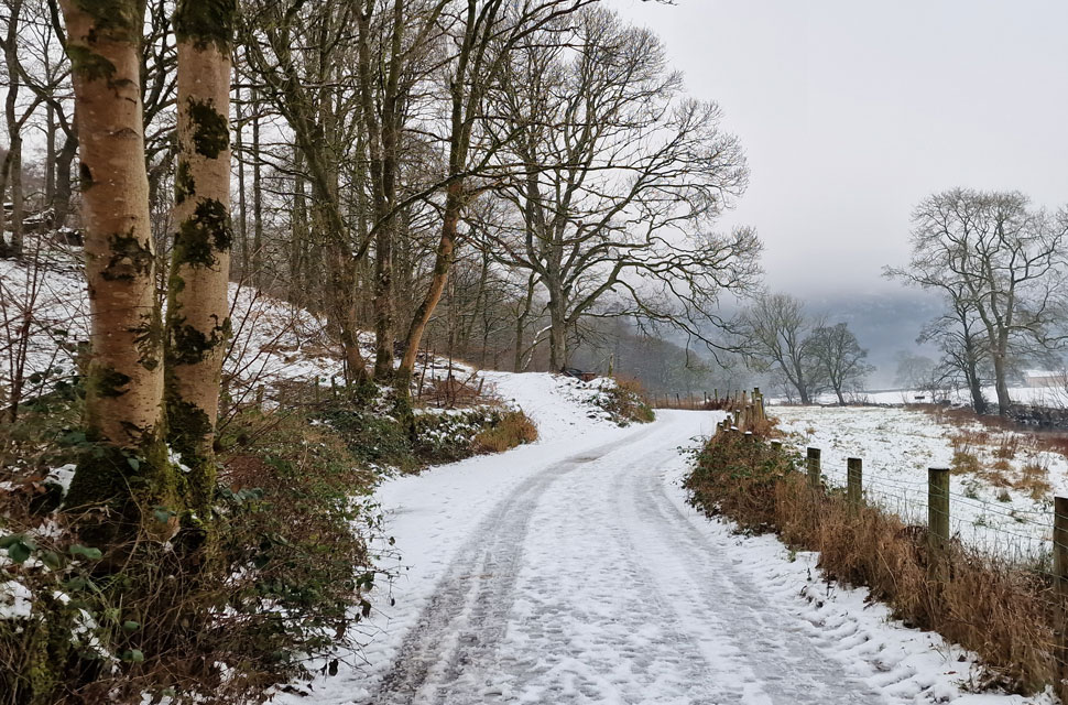 After what can only be described as some of the finest Winter walking conditions over the past week overnight snow has caught Cumbria County Council by surprise leaving trunk roads un-gritted resulting in stranded cars along the A591 and accident after accident. I left the M6 at junction 36 but it wasn't until I reached the junction for the A590 did the chaos begin. Cars with their indicators still flashing were left abandoned along the carriageway. Police were doing their best helping the owners of vehicles which had left the carriageway who had also been caught by the sudden change in road conditions. My headlights lit up one carriageway and a set of tyre tracks left by vehicles further up the road who like me were travelling at less than 20mph by now. To say my heart was in my mouth would have been an understatement, I couldn't believe the roads hadn't been gritted.