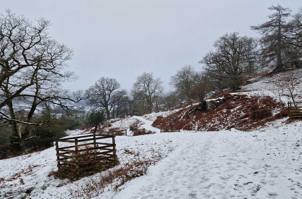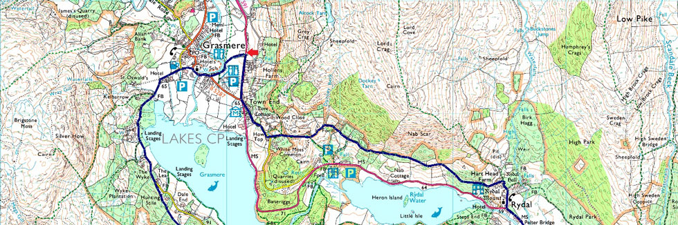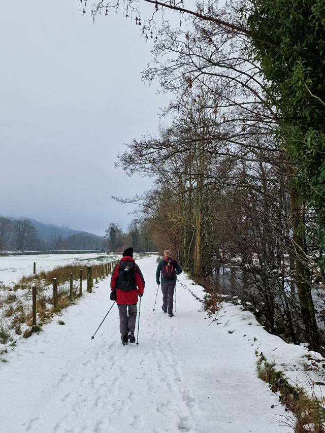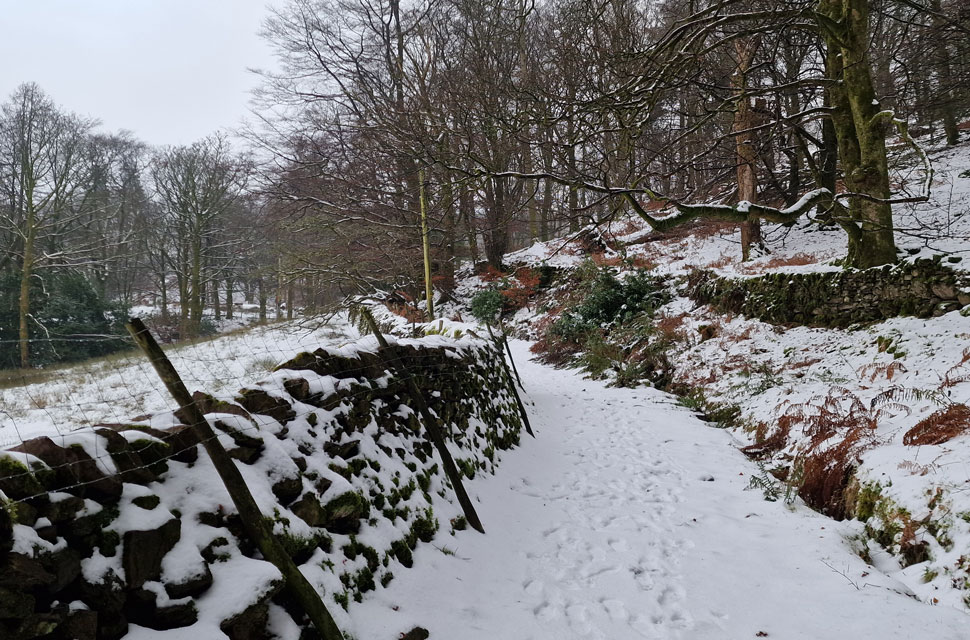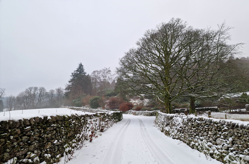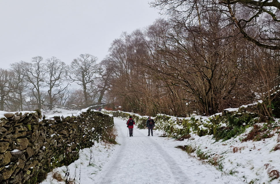 We had arranged to met at the lay by just outside Grasmere at 08:30am and despite conditions, I was only behind by ten minutes or so. I was expecting my phone to ring from either David or Rod who were travelling from the north via St Johns-in-the-Vale and Dunmail Rase. David was already there when I arrived and from the look on his face the first topic of conversation was how treacherous road conditions were over Dunmail Raise - confirmed by Rod who arrived a few minutes later. It had crossed all three of our minds 'what were we doing here' but I guess there's no better way to settle the nerves than to walk a ten miler through the tranquility of some of Lakelands most scenic hamlets.. |