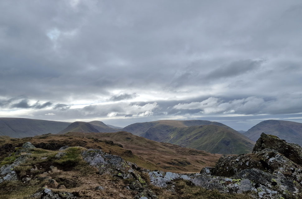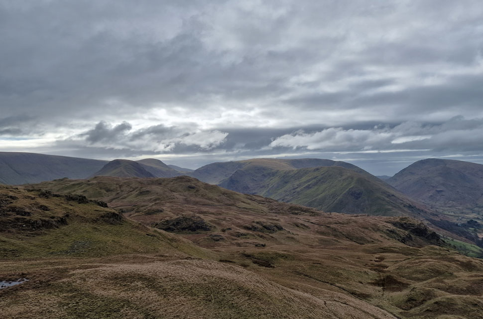High Street, Gray Crag, Hartsop Dodd, Caudale Moor and Red Screes from Angletarn Pikes summit. |