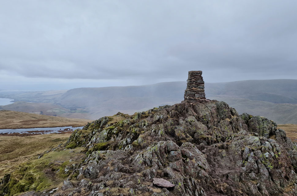 The windchill was probably at its coldest here on Angletarn Pikes making it difficult to hang around to enjoy the impressive views whilst remembering it was here twelve years ago that I completed my first round of the Wainwrights. Back then there was a proper summit cairn into which I buried a champagne cork, with the numbers 214 written on it. All gone now but the memories will last forever. |