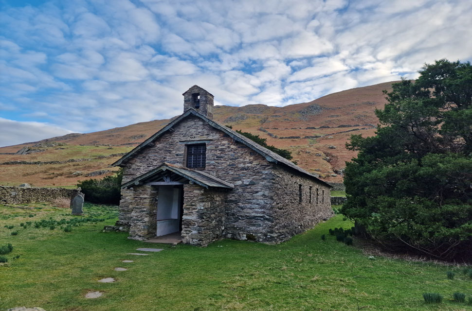 We had arranged to meet at the car park at Martindale New Church where I arrived around 08:00am soon followed by David who pulled up alongside my car. The car park and the verge opposite were already starting to fill up which is getting more common even for a February. Rod arrived next and parked next to the Church wall as David and I chatted whilst watching a trio descend Hallin Fell.