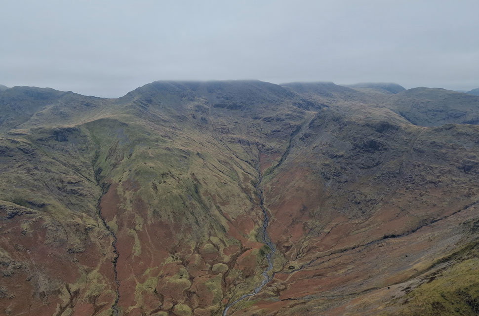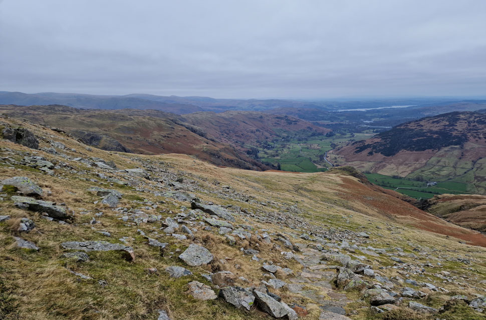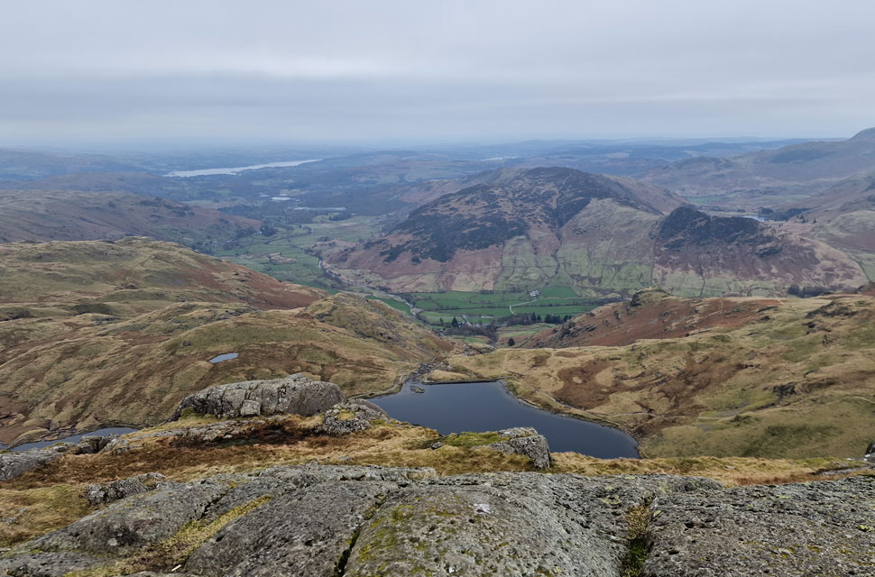 Looking down on Pike Howe and the Great Langdale Valley. |