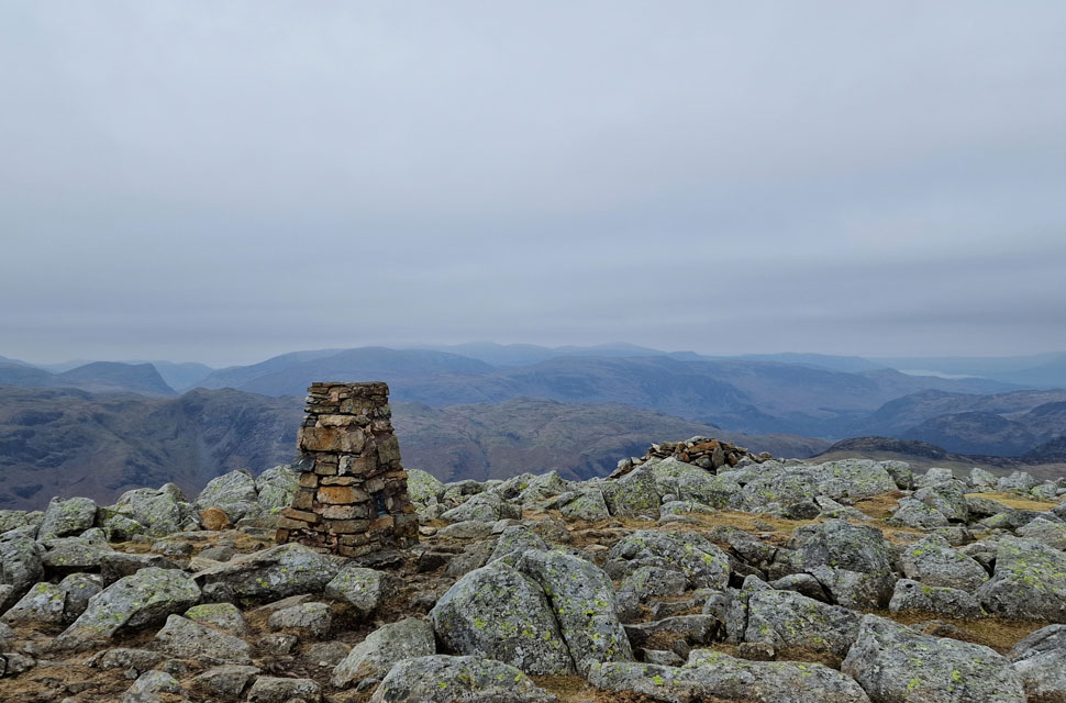 The mass of Bow Fell from Pike O'Stickle summit. |