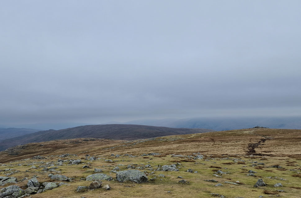With the distant eastern fells looking gloomy in the flat light. |