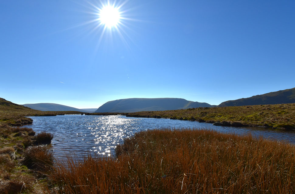 From a sun drenched Caspelgate Tarn. |