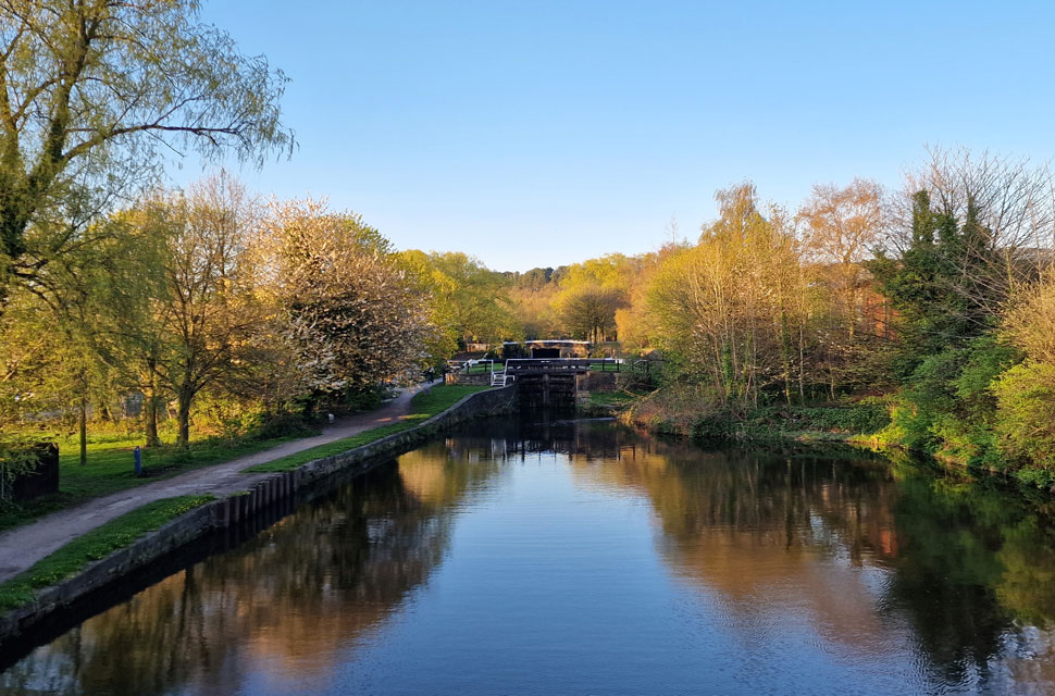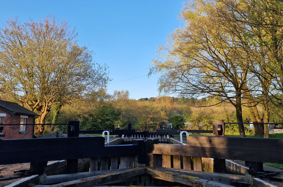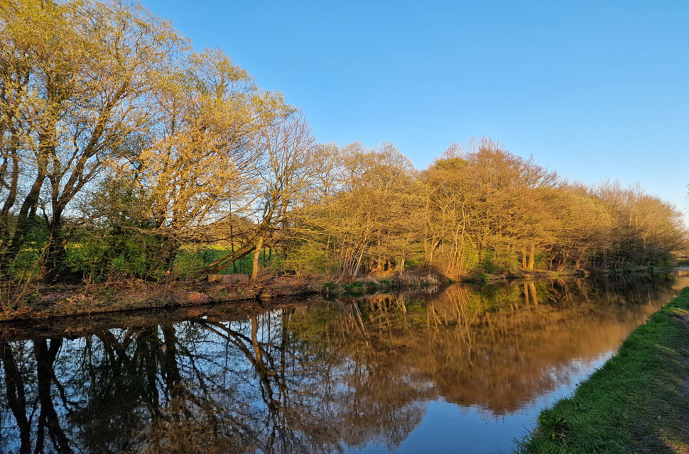 It was cooler now, and if I could have gotten away with it, I would have somehow pulled my sleeves down over my hands as the evening temperature prepared for dusk. Forgetting that it's still Spring and not summer, I was almost benighted as I peddled the six miles home, my front L.E.D. lighting up a spiral section of towpath whilst the decreasing chill clipped at my ears. |