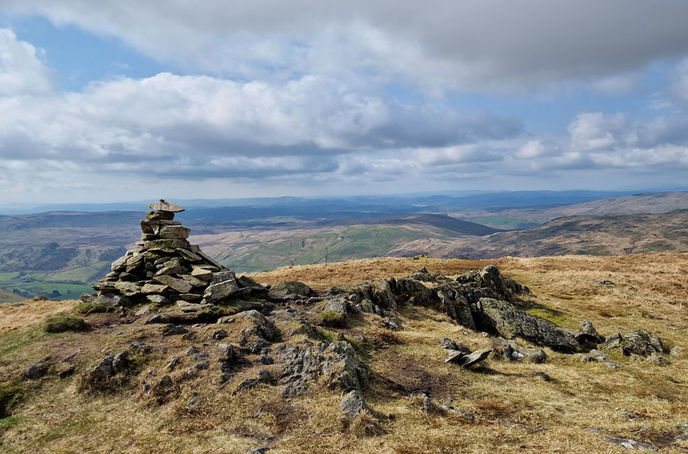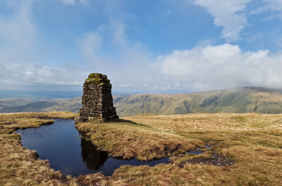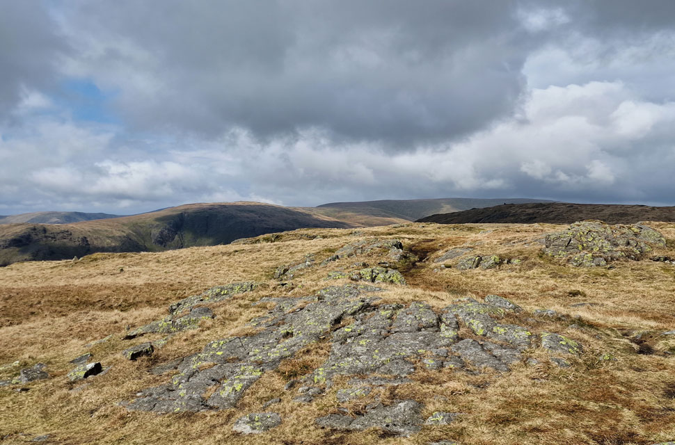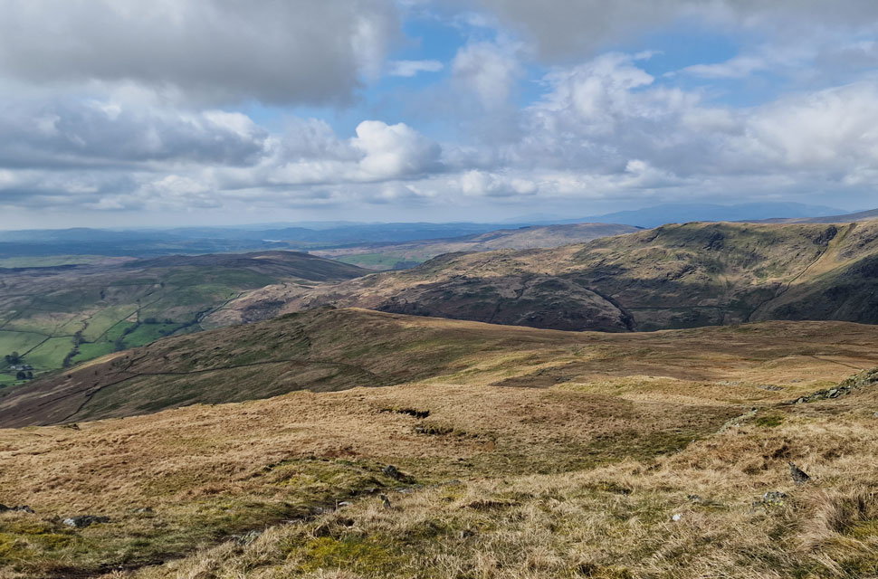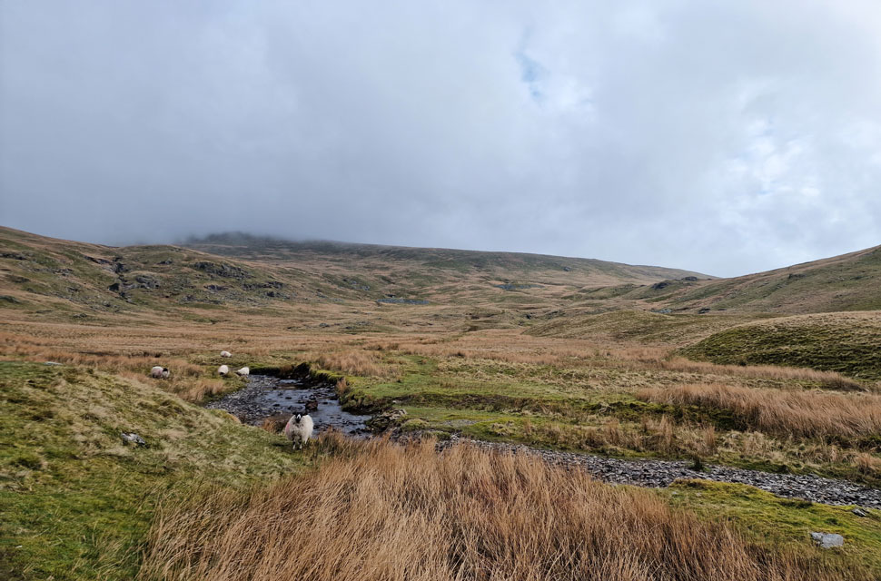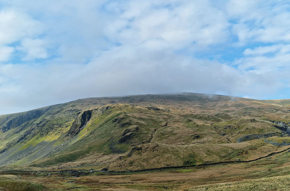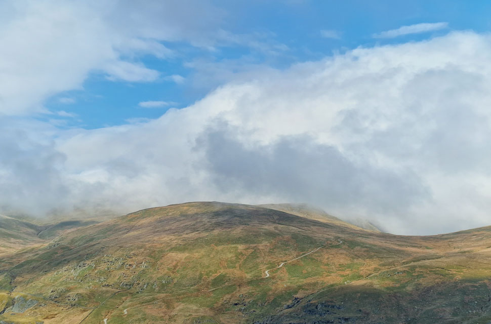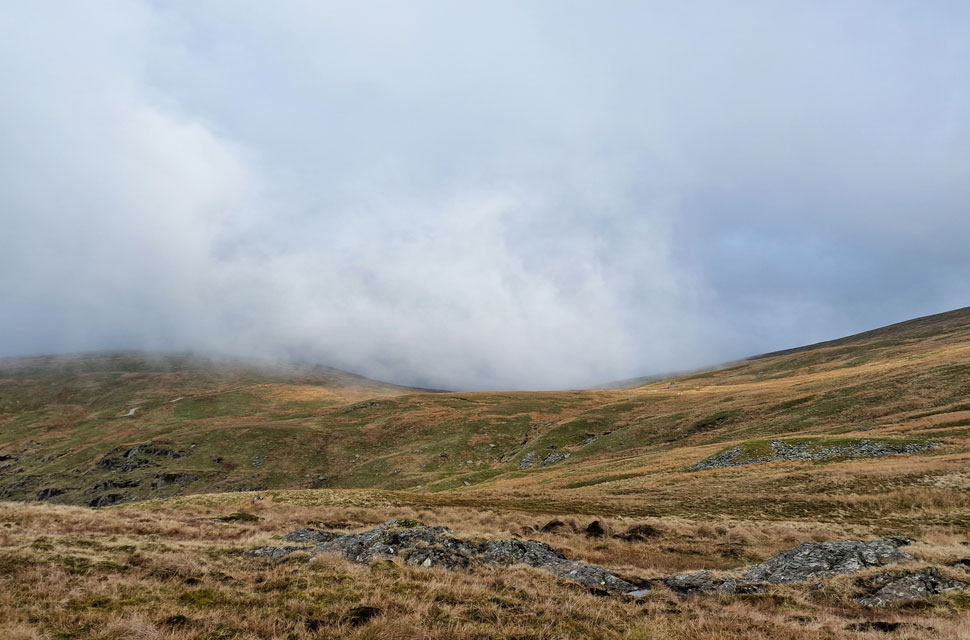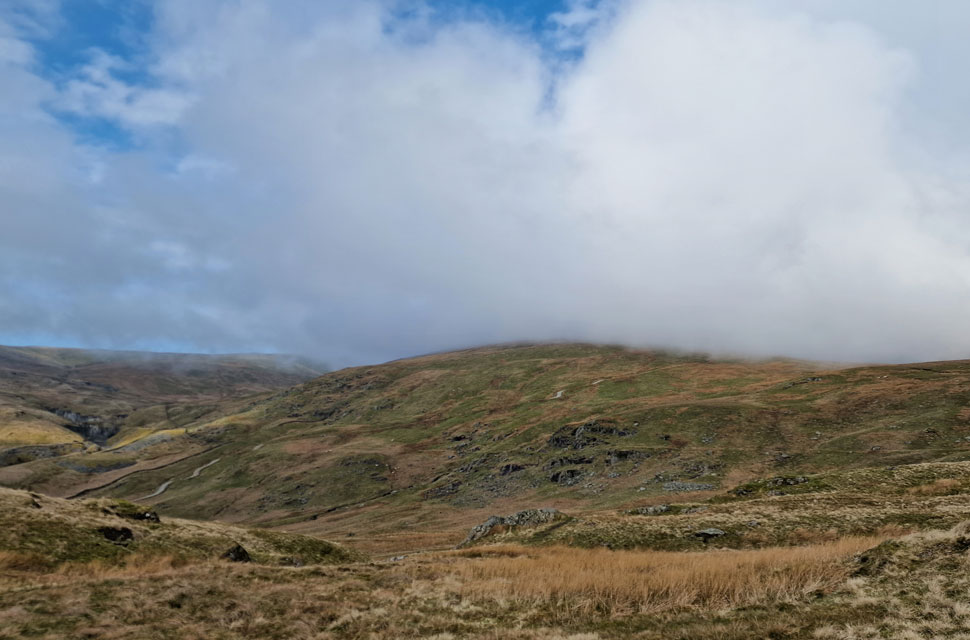 The cloud is clearing enough to spot Harter Fell along with the top of Gatescarth Pass over on the right. |