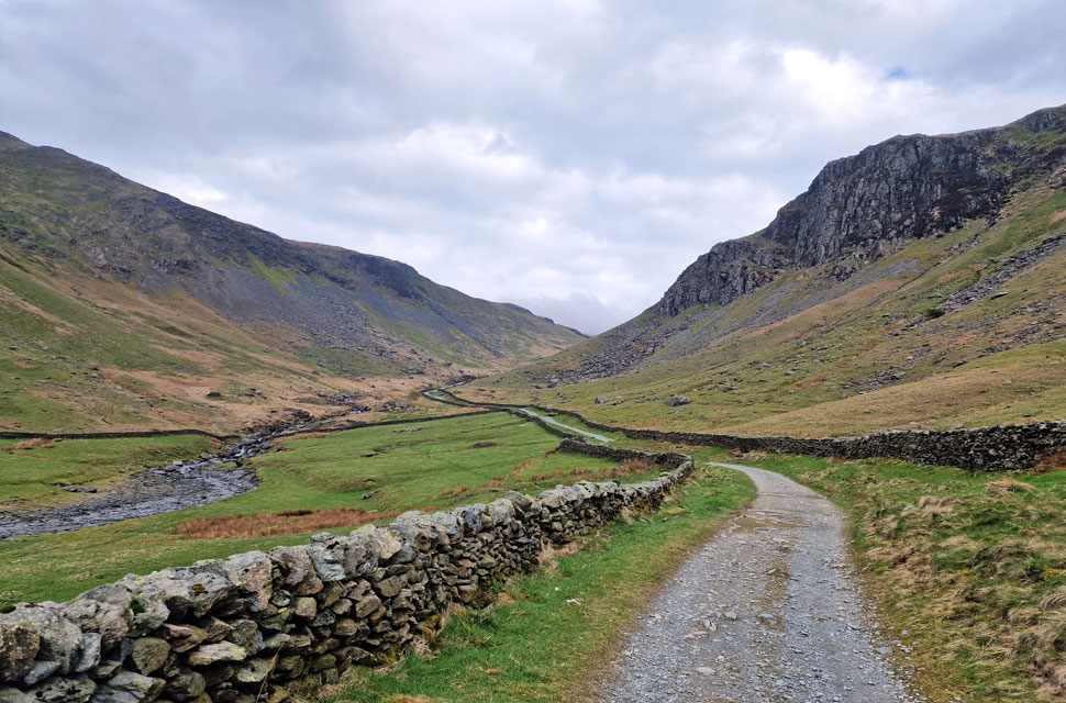 Despite spring being in the air, it certainly isn't short weather just yet; in fact, there's a wind blowing down the valley, which prompts me to add my beanie and gloves after I'd laced my boots up. After a final gear check, I lock my car, turn heel and begin the two-mile walk through the valley towards the Longsleddale side of the Gatescarth Pass. |