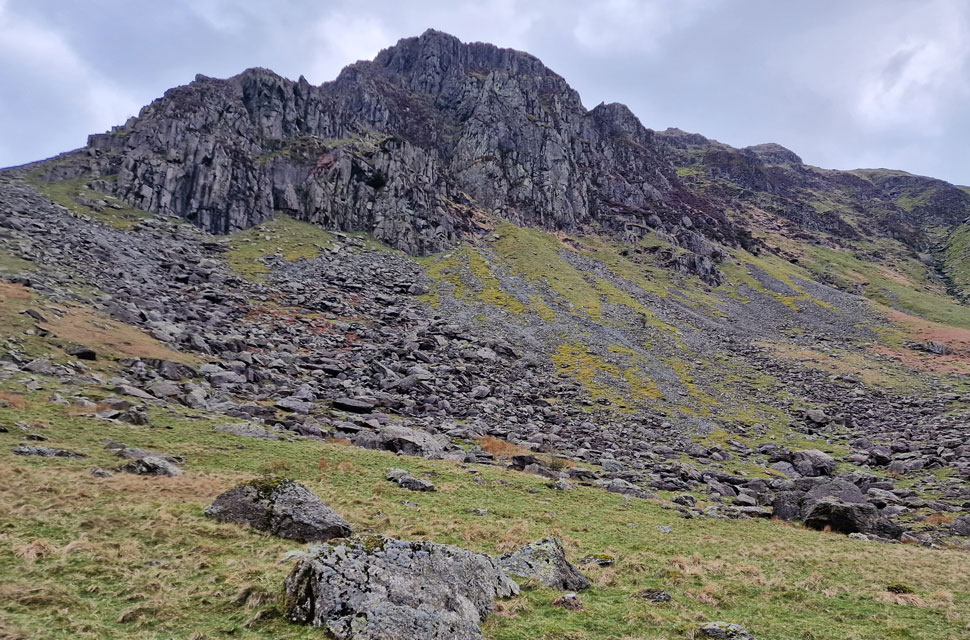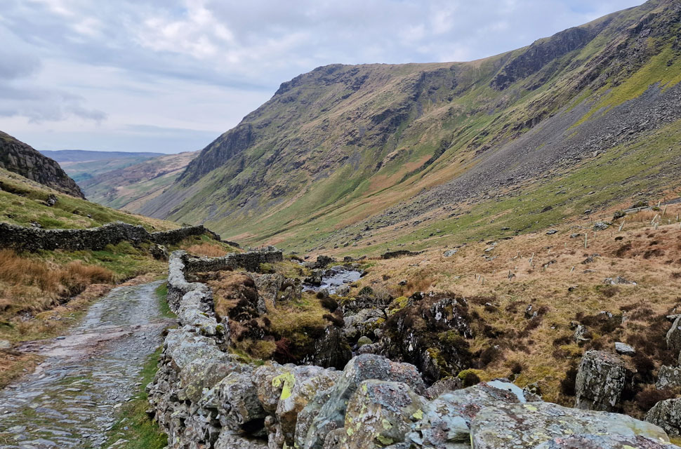 Wrengill Quarry (left) Adam Seat (right) and Gatescarth Pass. |