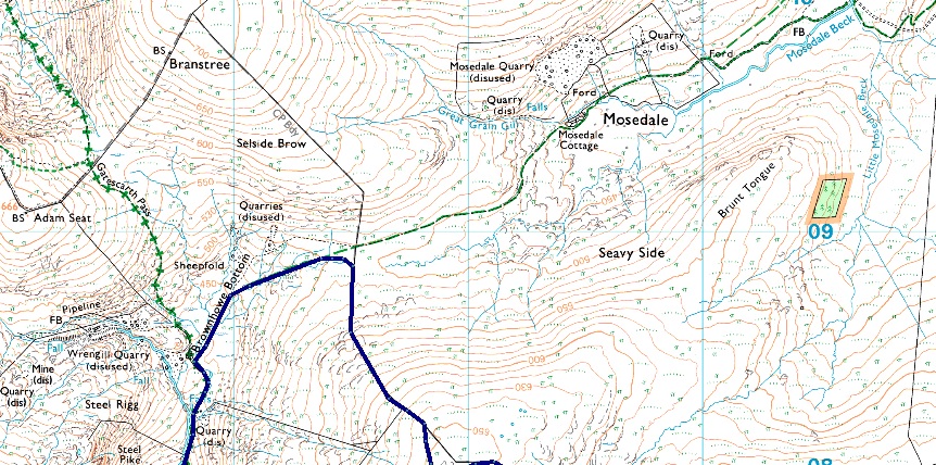 It's time to leave the track at a sign posted Mosedale via Brownhowe Bottom, which, as you can expect after recent rain, was pretty damp underfoot. |
