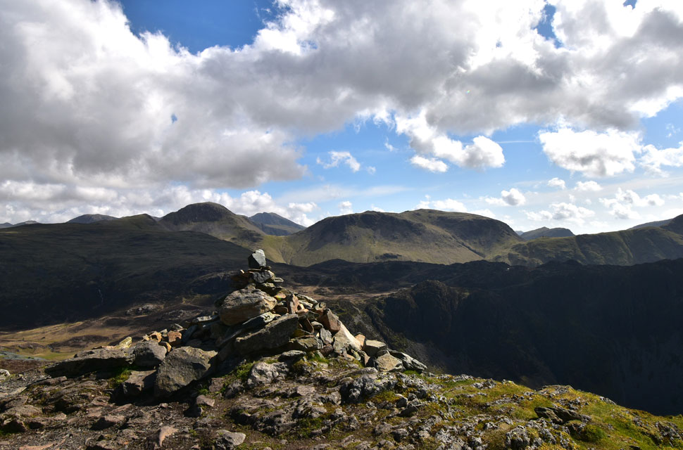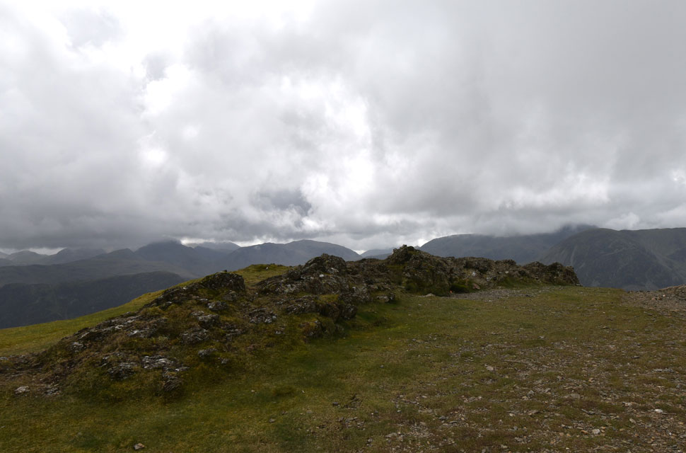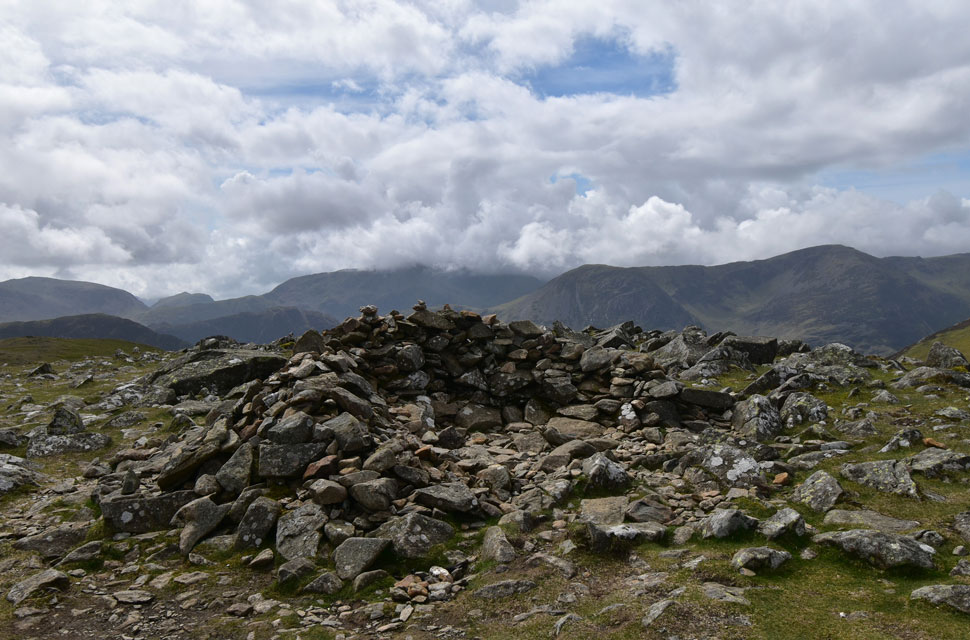 Great End, the Gables, Scafell Pike, Kirk Fell and Red Pike (Wasdale) from Fleetwith Pike summit. |