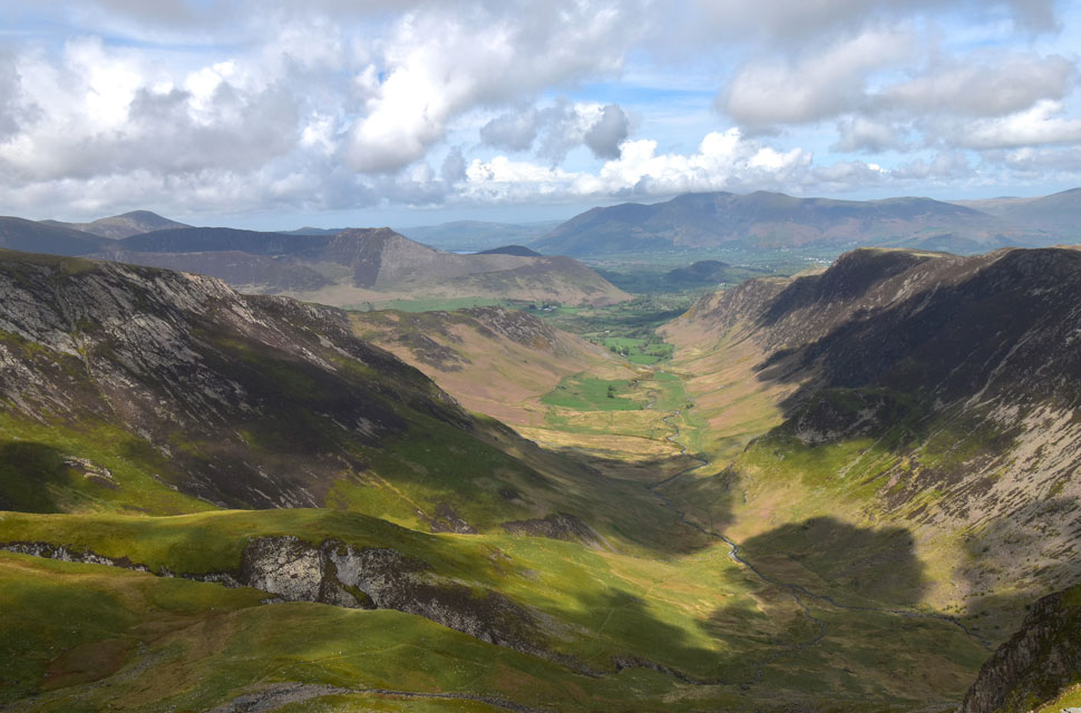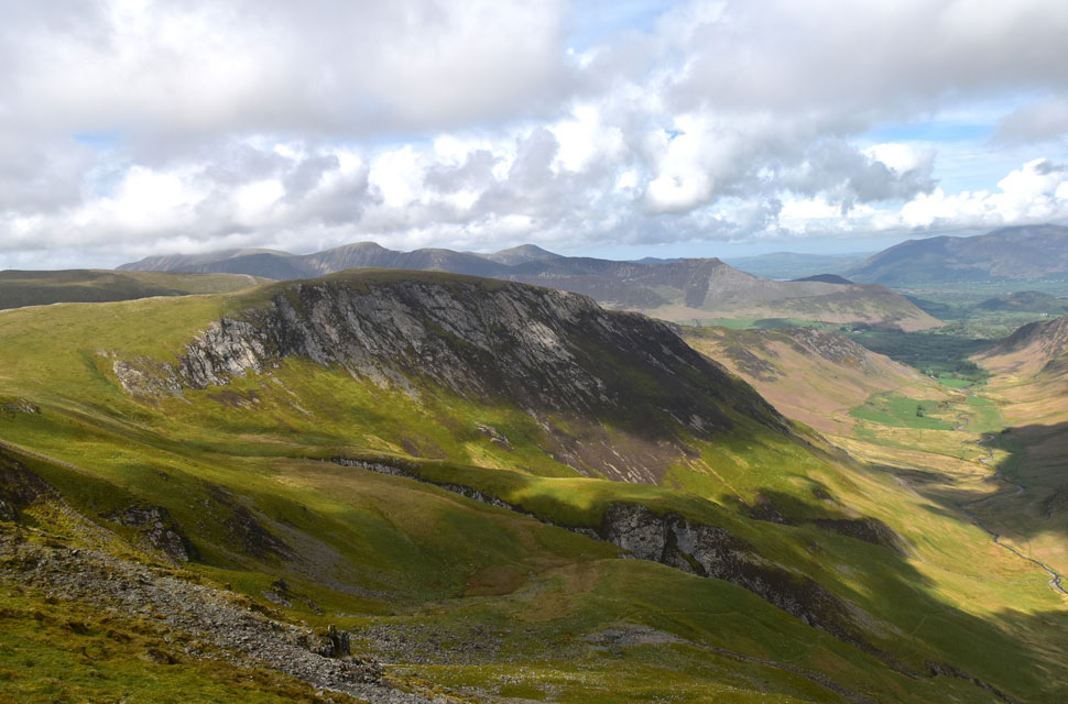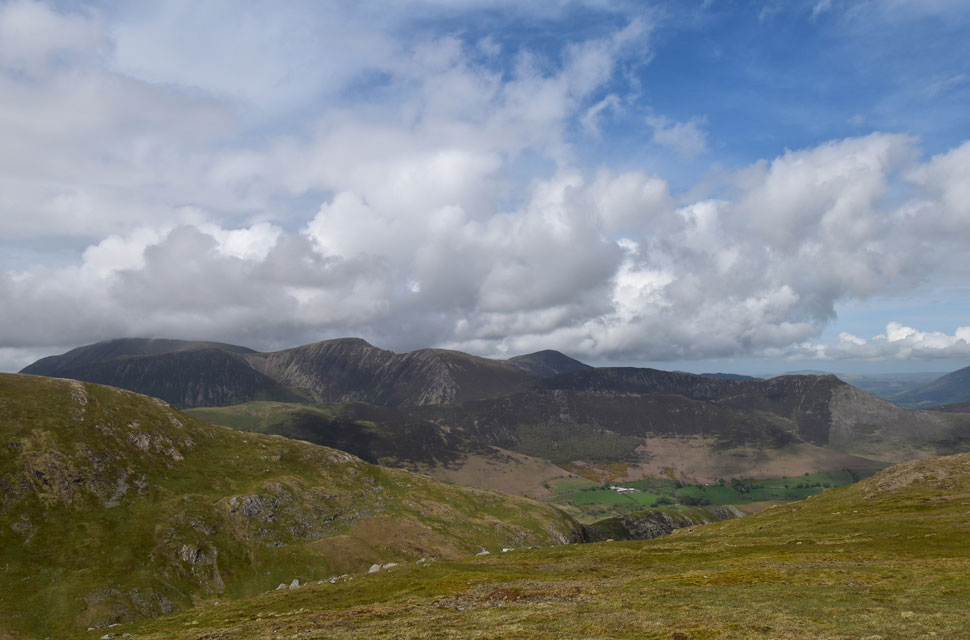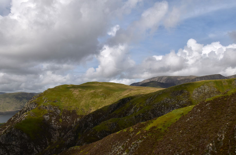Towards Littledale Edge, Robinson, High Snockrigg, Grasmoor, Rannerdale Knotts, Mellbreak and the Loweswater Fells. |