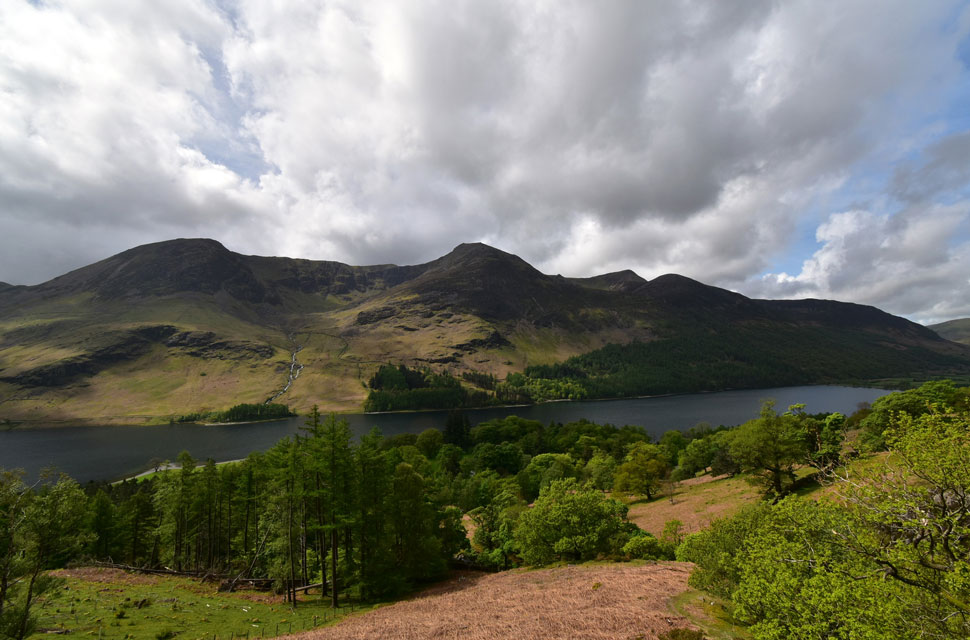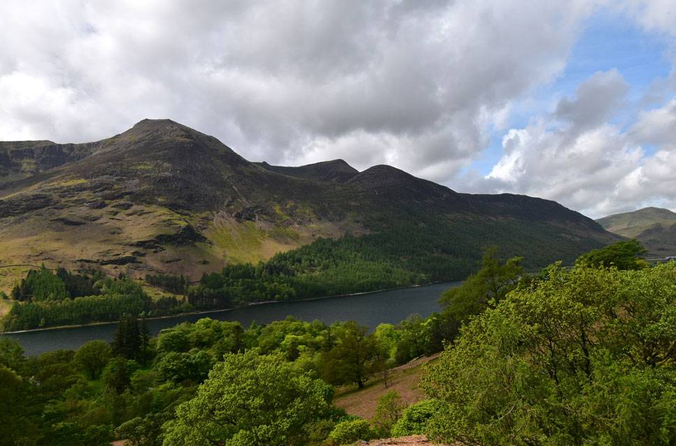 Views beyond Folders Wood and Buttermere Lake towards High Stile, Dodd, Red Pike (Buttermere) and finally Hen Comb. |