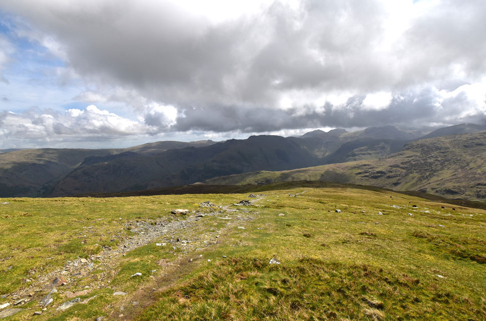 With long distant and somewhat hazy views towards the Skiddaw group and Blencathra. |