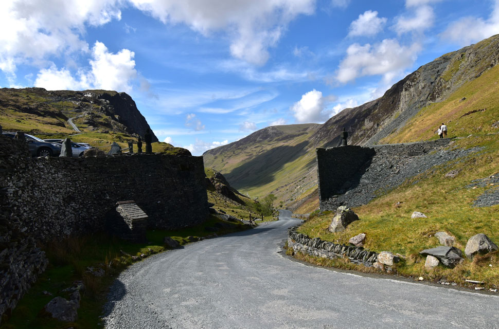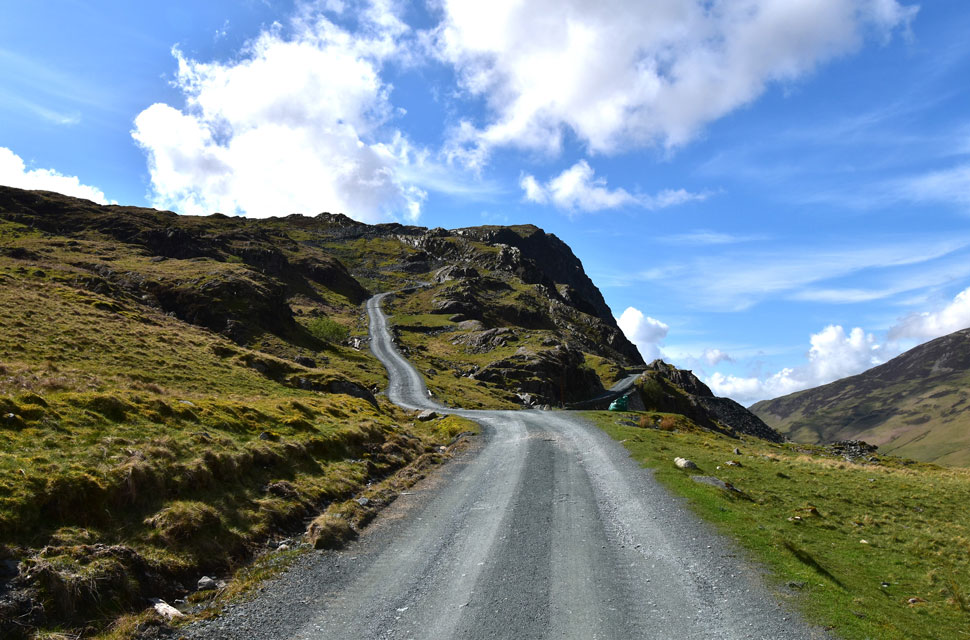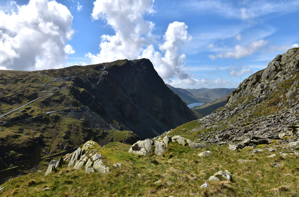 Looking down on Honister Pass flanked by Fleetwith Pike. |