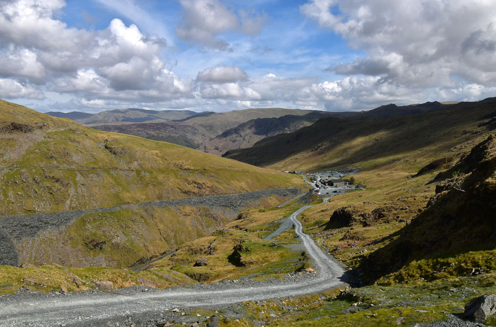 Honister Mine was busy with visitors not to mention the huge 'Tonka' truck escorted by a Honister pick up that had just ascended the mine track no doubt heading towards the Hopper Slate Mine on Fleetwith Pike. I was on the last leg now under warm late afternoon sunshine where despite a cooling wind, I delayer to my T shirt. |