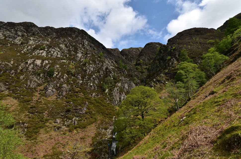While over to the right in an area known as Goat Gills where four streams converge to form Hassnesshow Beck. You can see why these crags are often referred to as the 'heart-shaped crags' |