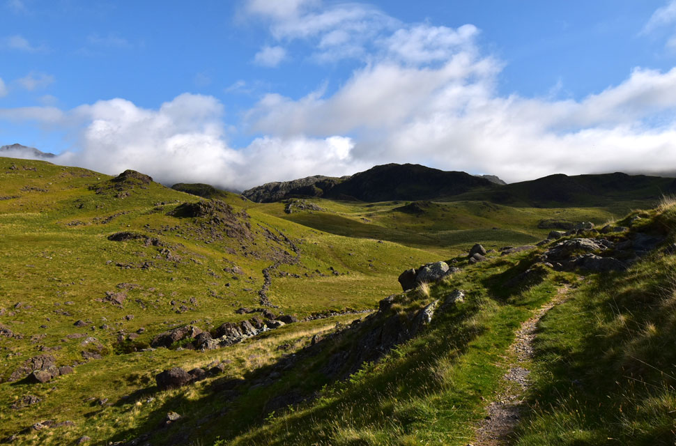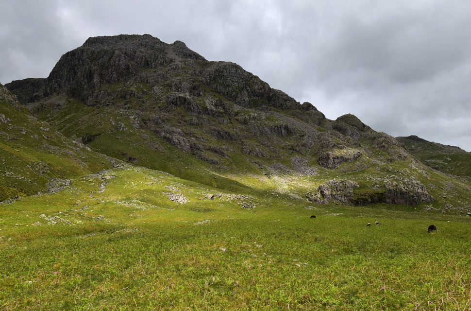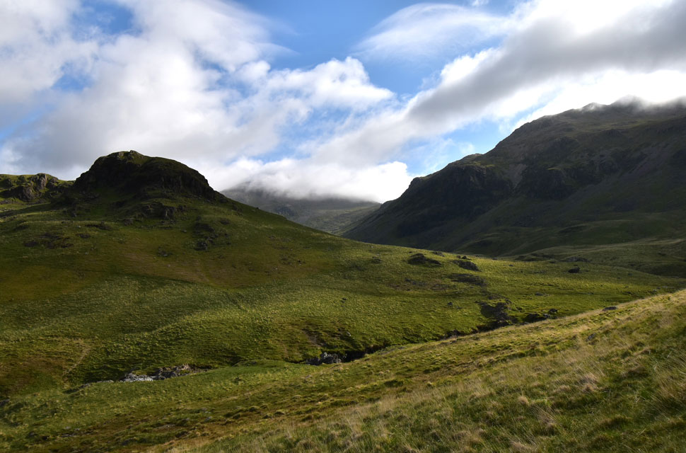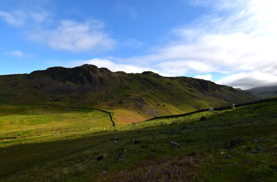 | Still in shade but not for long as I notice Bow Fell has a huge mass of cloud over its summit over to the right. |