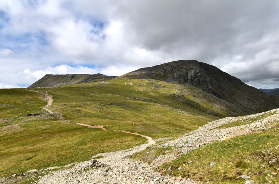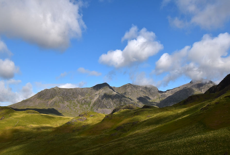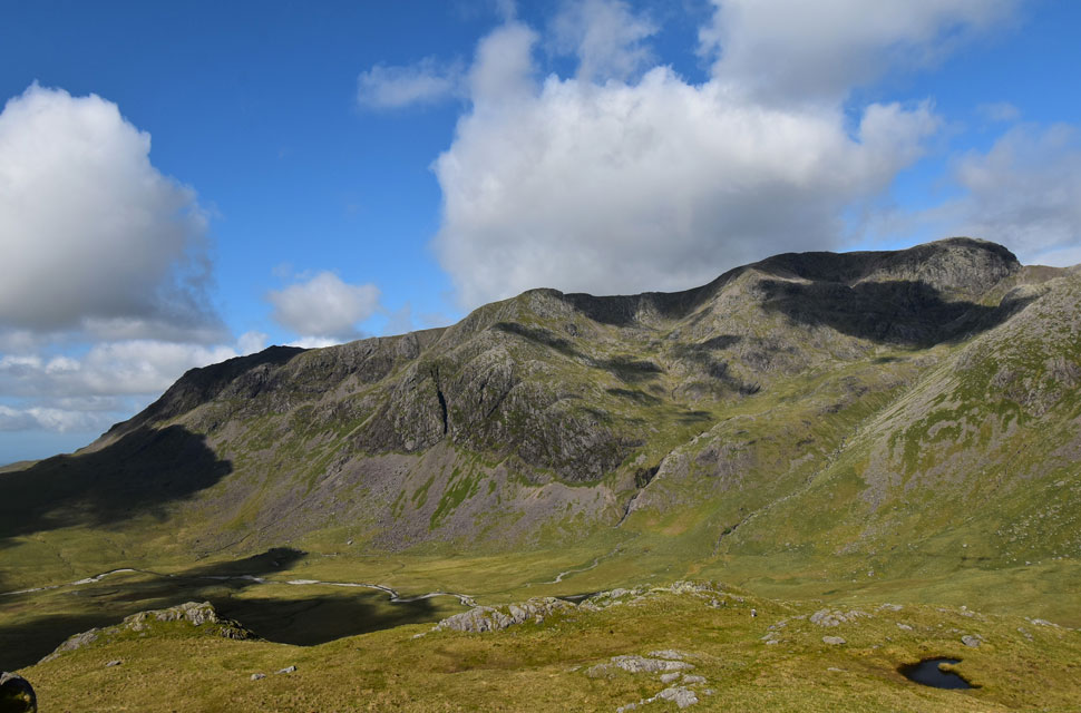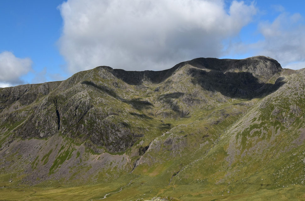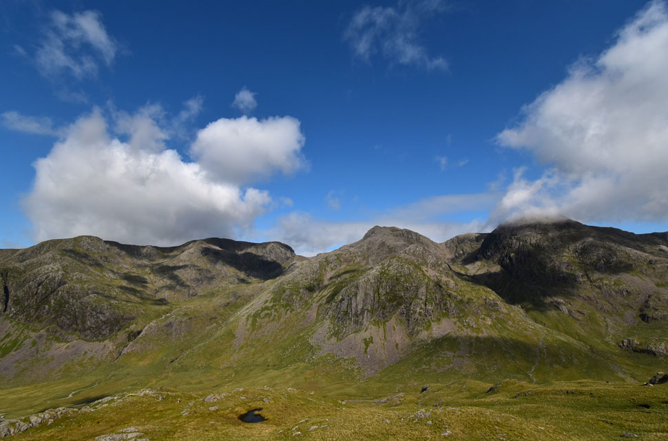 | Incredible views of Slight Side, Cam Spout Crag, Sca Fell and Scafell Pike. |