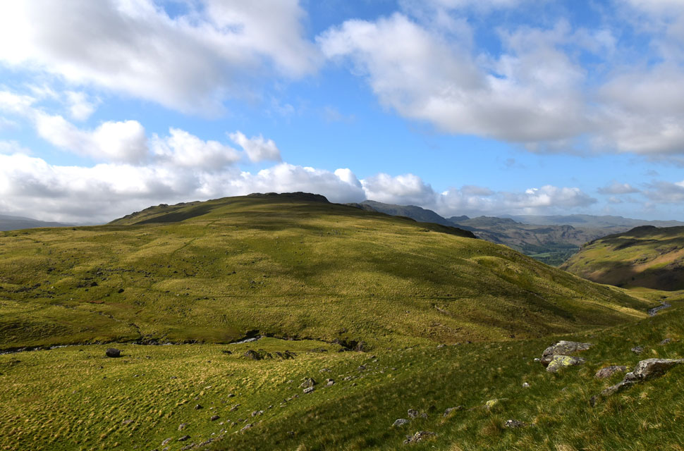 | Looking back towards Harter Fell (Eskdale) Crook Crag and Green How. |