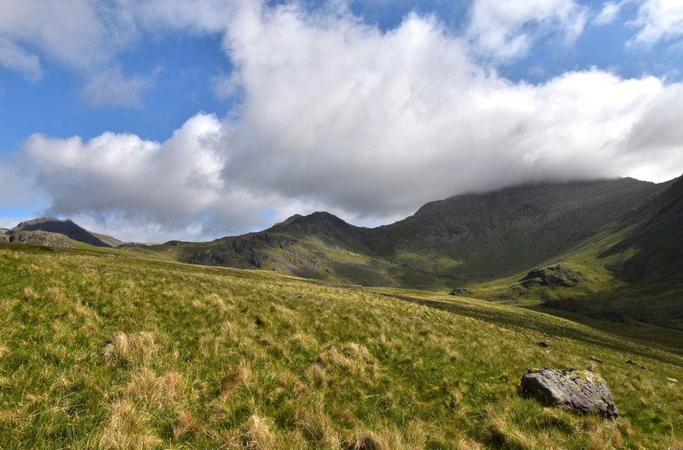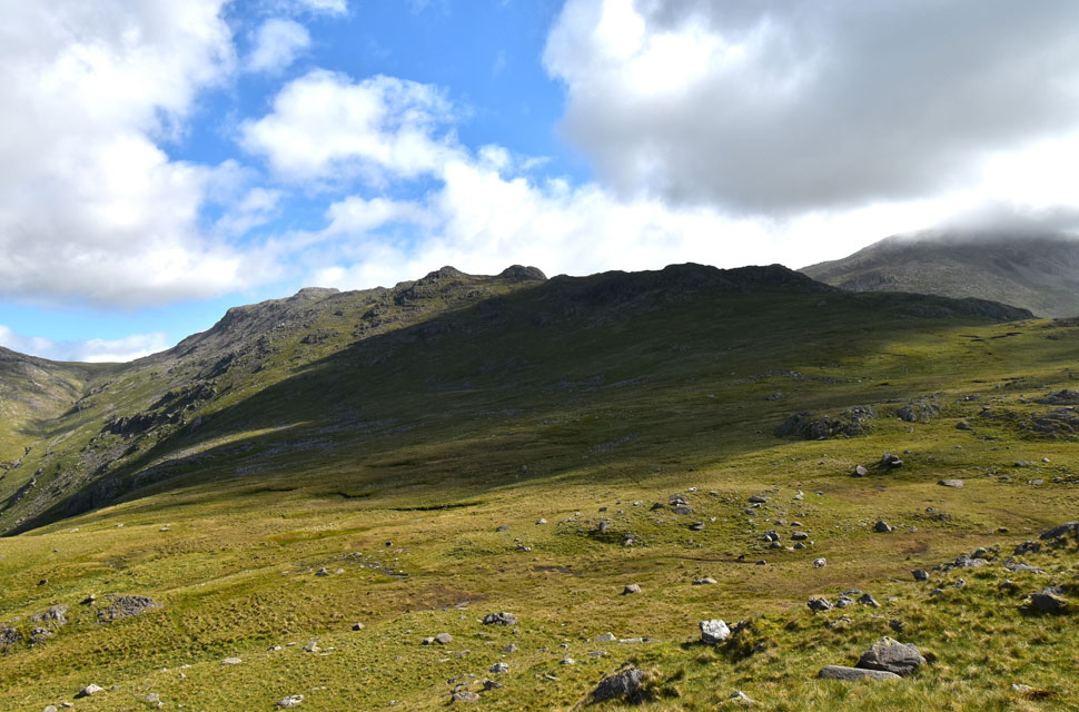 | Towards Slight Side, Cam Spout Crag and Sca Fell. |
