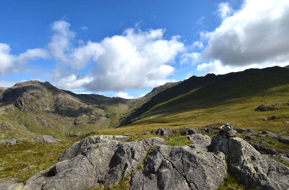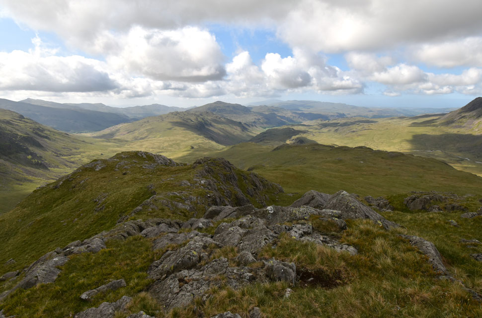 | High Gait Crags doesn't have to be gained in order to access the south ridge but it does offer some of the best views of the Scafells and Upper Eskdale. |