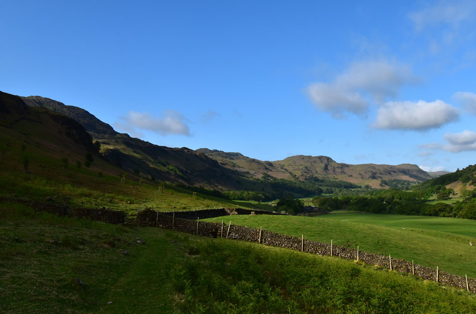 | Brock Crag, Yew Bank and a distant Crinkle Crags from Taw House. |
