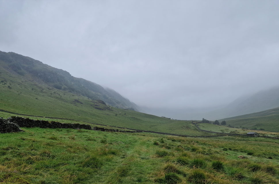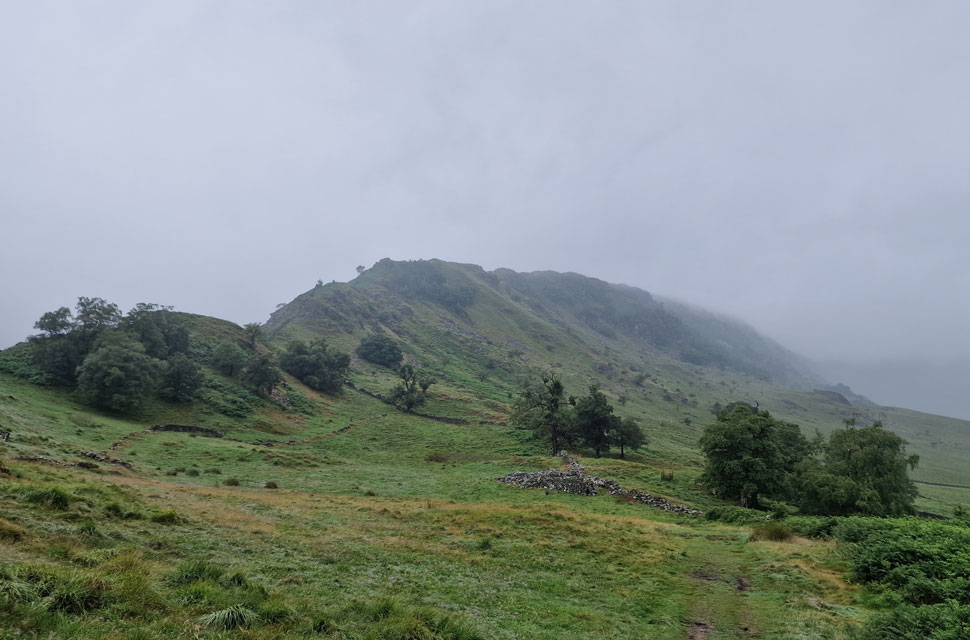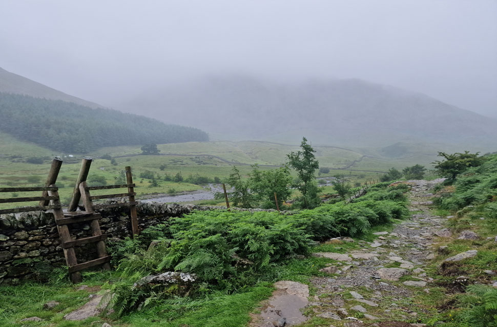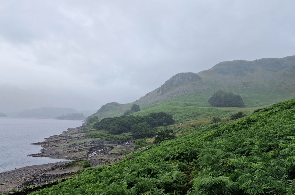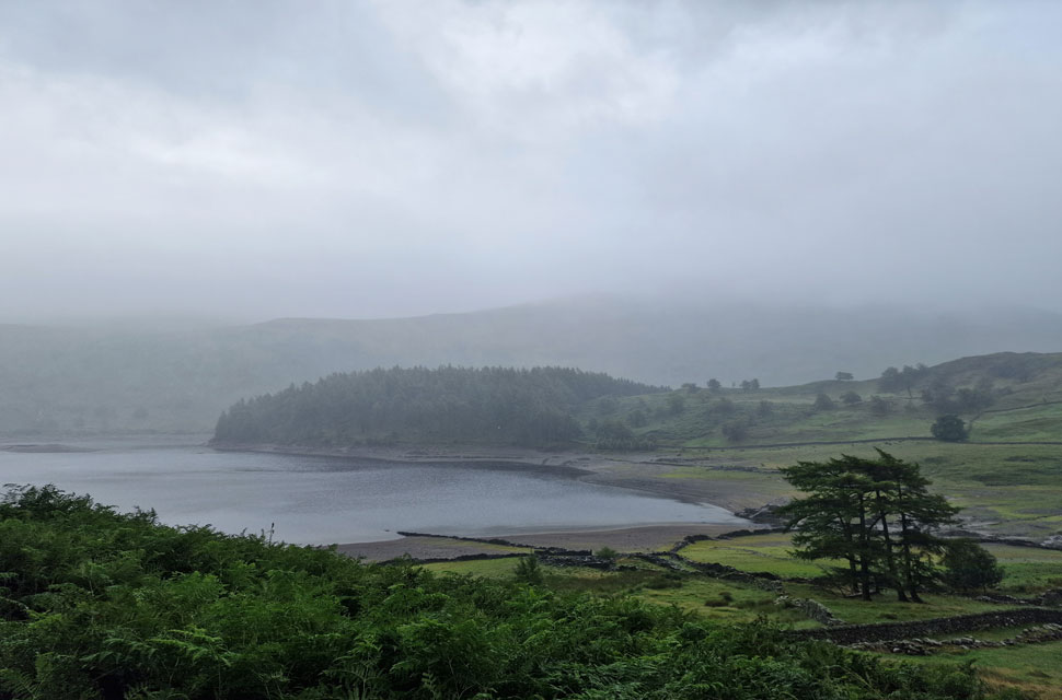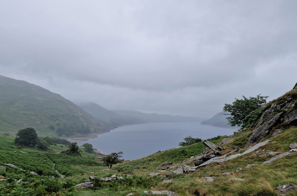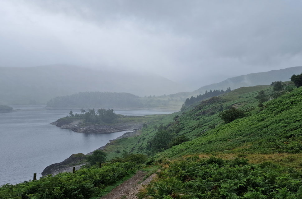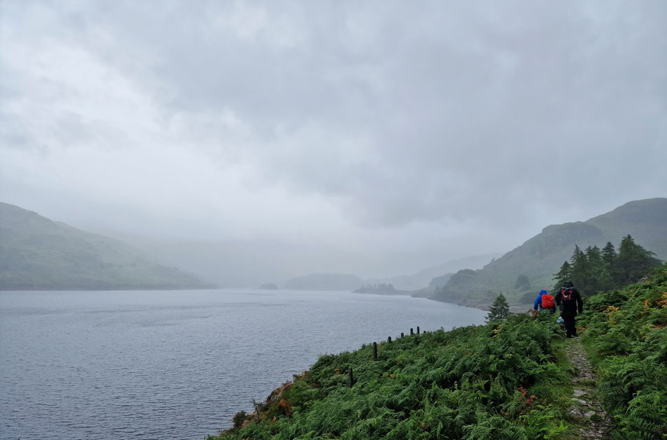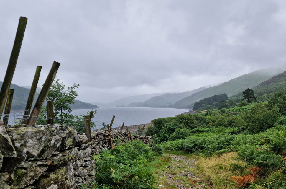 The rain got heavier as we passed through Mardale Head, reducing David's chances of removing his waterproof jacket on account of being too hot. David was right; it was mild, but it was also very wet, so we had to grin and bear it for now.