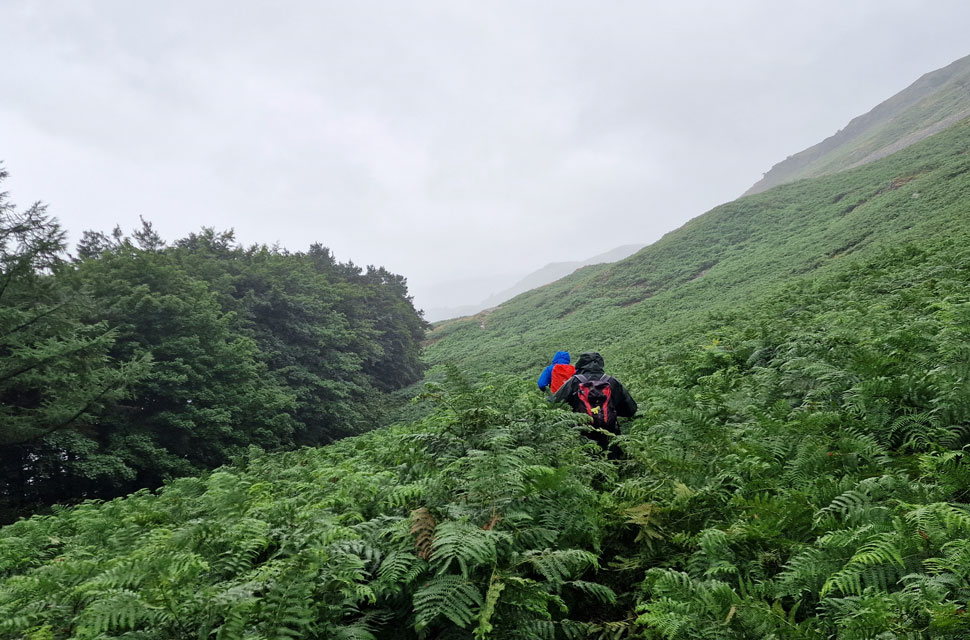 Battling through the bracken. |
