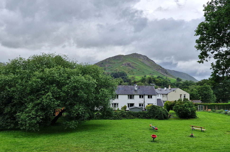 Another shower came and went, and I was able to use my tailgate as a shelter, by which time I'd changed my mind from adding my Alpkit windproof jacket to my Rab waterproof. Kitted up, we left the lay-by and walked along the A591 until we turned right onto Pye Lane towards Broadgate and Butharlyp How. Grasmere was, as expected, quiet, and we turned into Butharlyp How where we passed a dog walker with her Golden Retriever. The views soon opened up, revealing Helm Crag set against a grey backdrop, little did we know blue skies amd warm sunshine were on the way. |