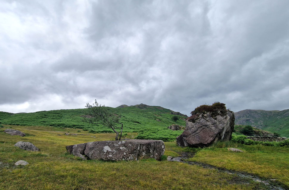 Holly tree and the split boulder, Far Easedale. |