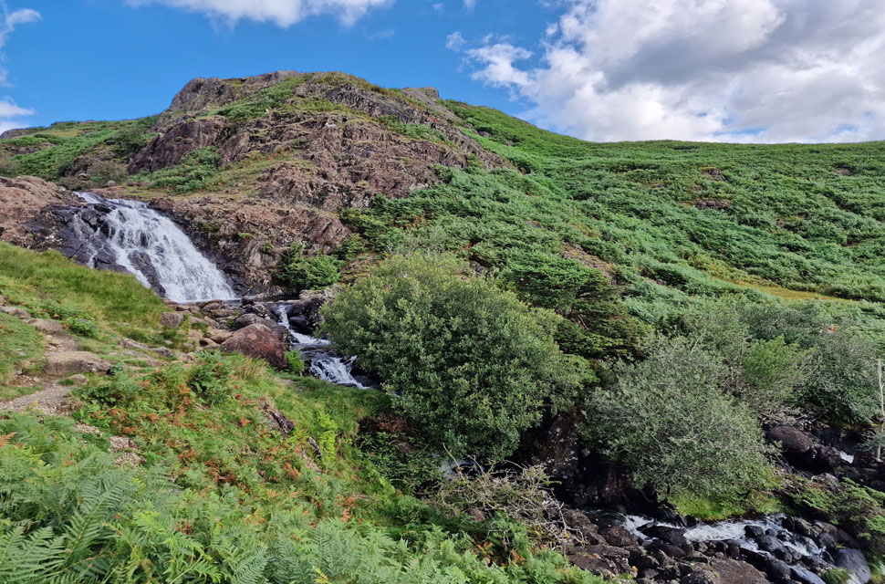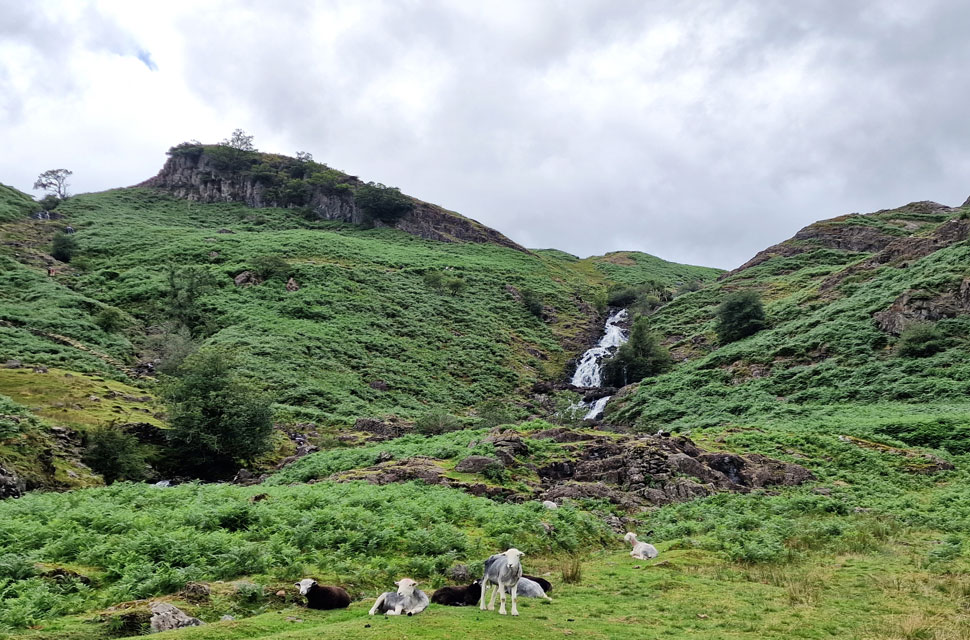 We followed the break in the bracken while steeply flanking Ecton Crag to our right. The bracken eventually gave way as we neared the base of the crag and we emerged at the footbridge near the foot of Sourmilk Gill before rejoining the footpath close to Brimmer Head Farm and New Bridge. It had clouded over by now, and by the looks of it we'd lost the sunshine for good. Passing around half a dozen walkers heading for Easedale Tarn Goody Bridge was soon reached, and Easedale Road thereafter. The road was much busier now, with folk travelling in both directions, as was the odd car.