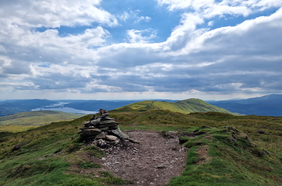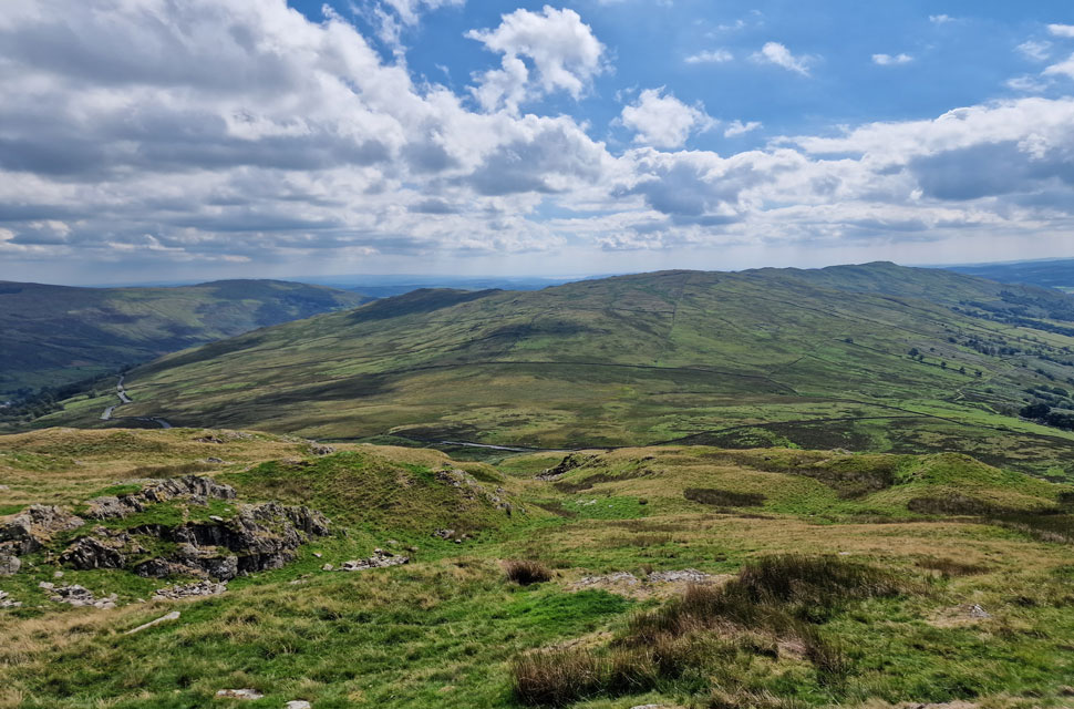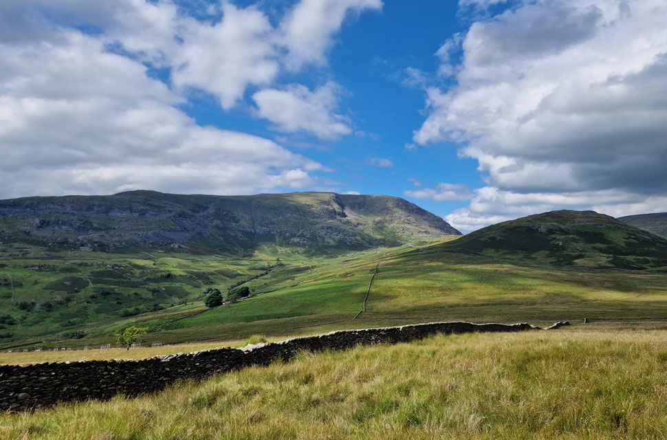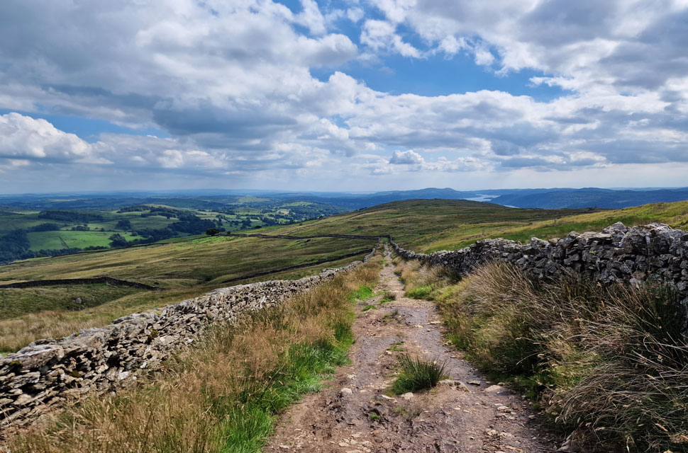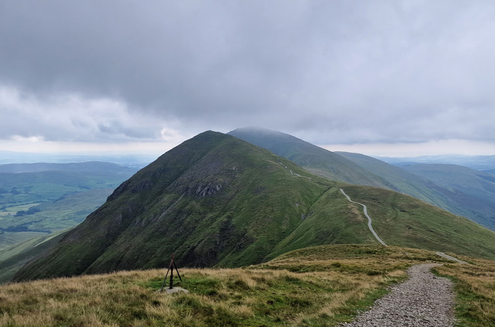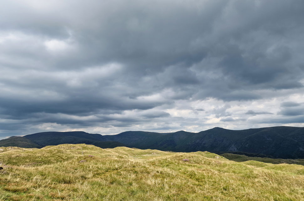 | Within the time it took us to gain Garburn Road (pass) clouds had rolled in and we were left in the shade. It happened so quickly that we couldn't believe that just a quarter of an hour ago all of this was under blue skies. That's Baystones over on the right, today's final summit. |