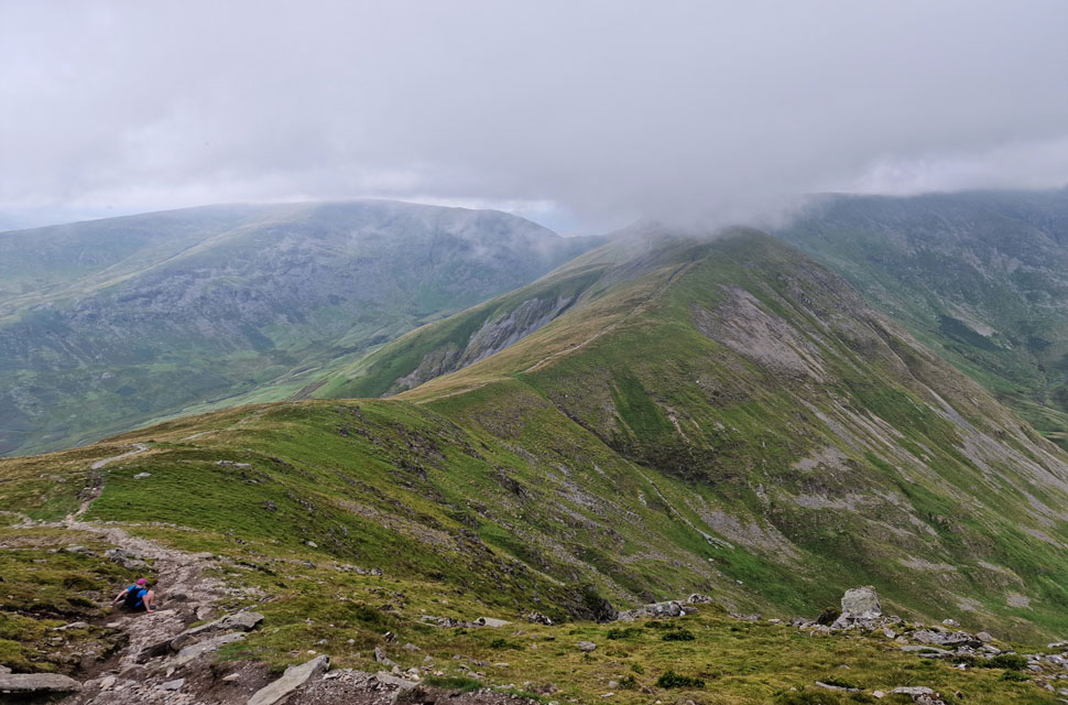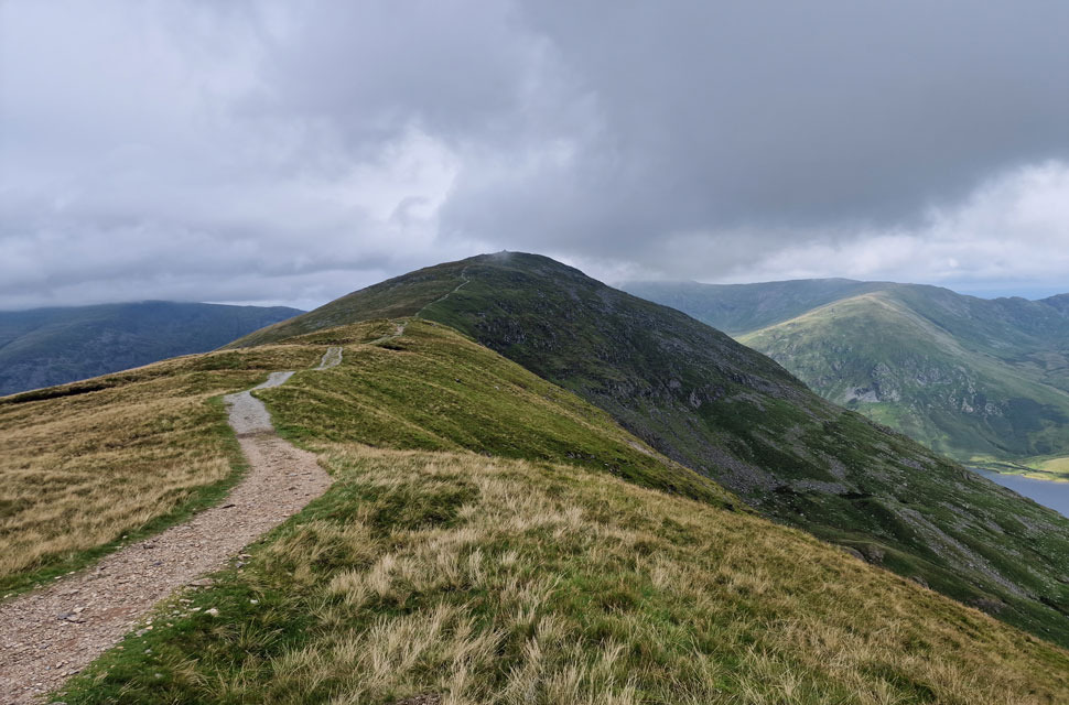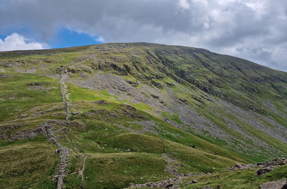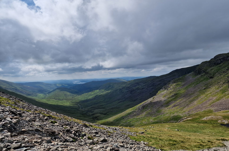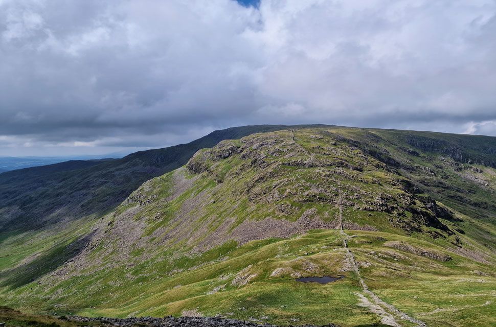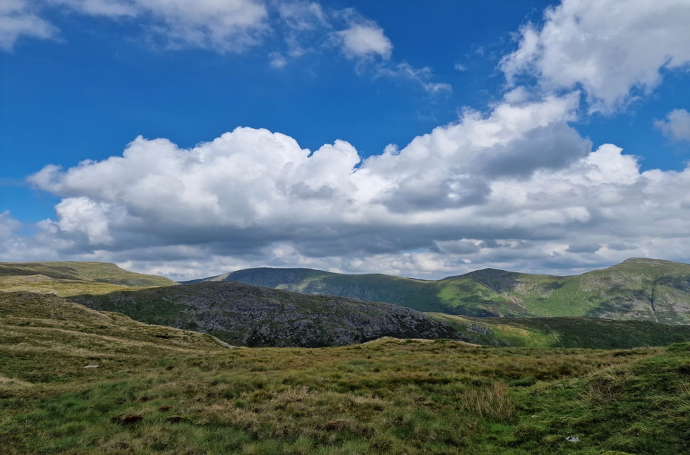 | As we joined Garburn Pass the views opened out over much of todays route with Caudale Moor and Thornthwaite Crag below cloud for now. |