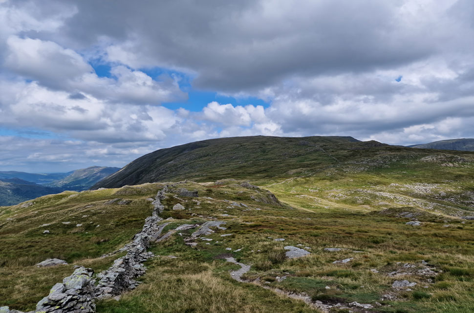 | Caudale Moor and Stony Cove Pike seen over Thresthwaite Mouth. |