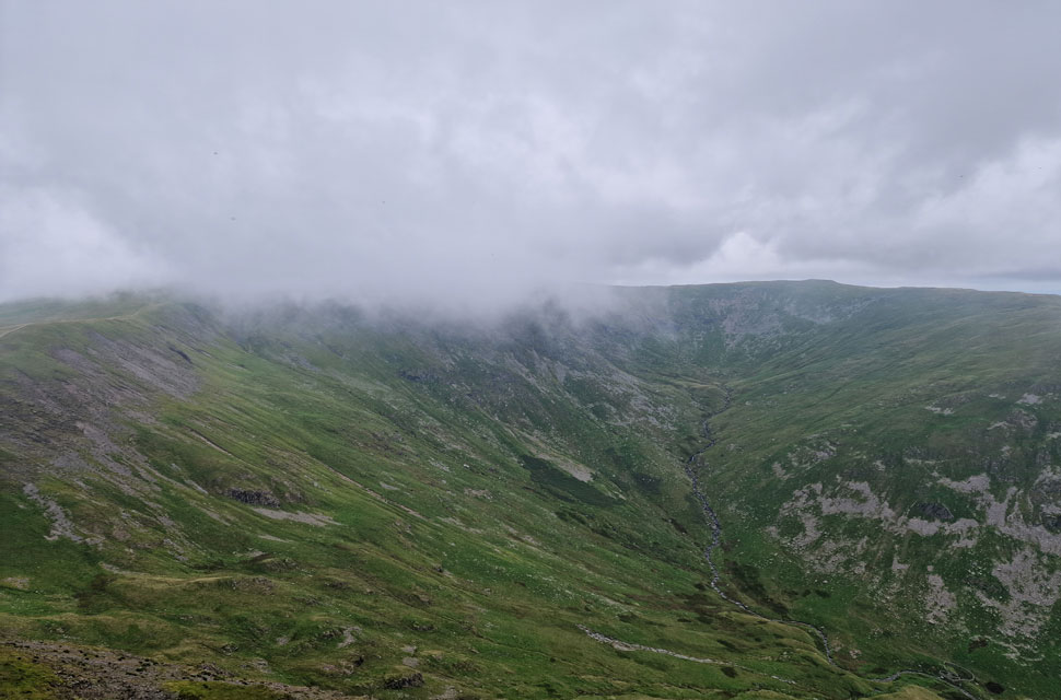| We summited Froswick and watched as the cloud sank lower over Thornthwaite Crag and into Hall Cove. It was midmorning, stupidly humid, and the cloud was showing no signs of lifting for now, but what a great show. |