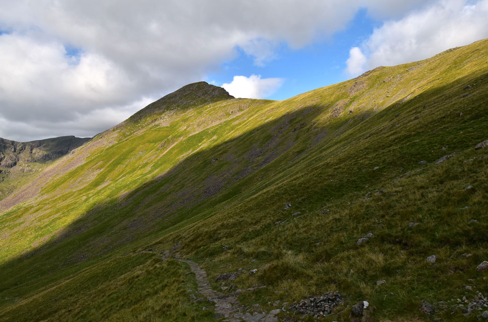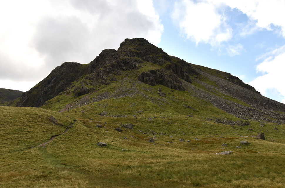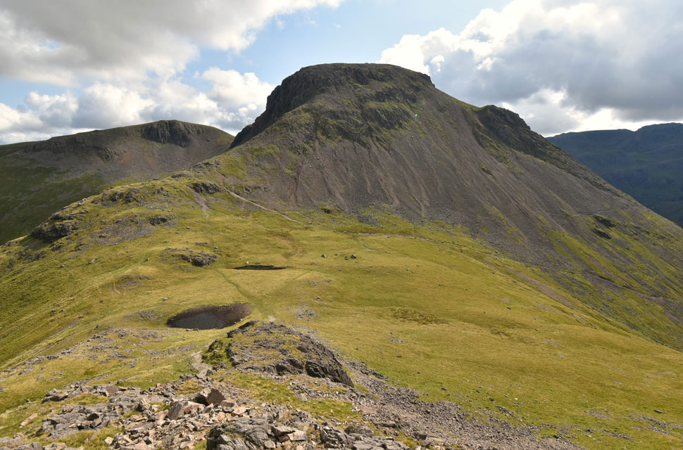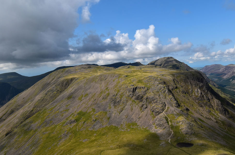 Linking with Great Gable is the depression of Beck Head to the east; westwards is a counterpart in Black Sail Pass. |
