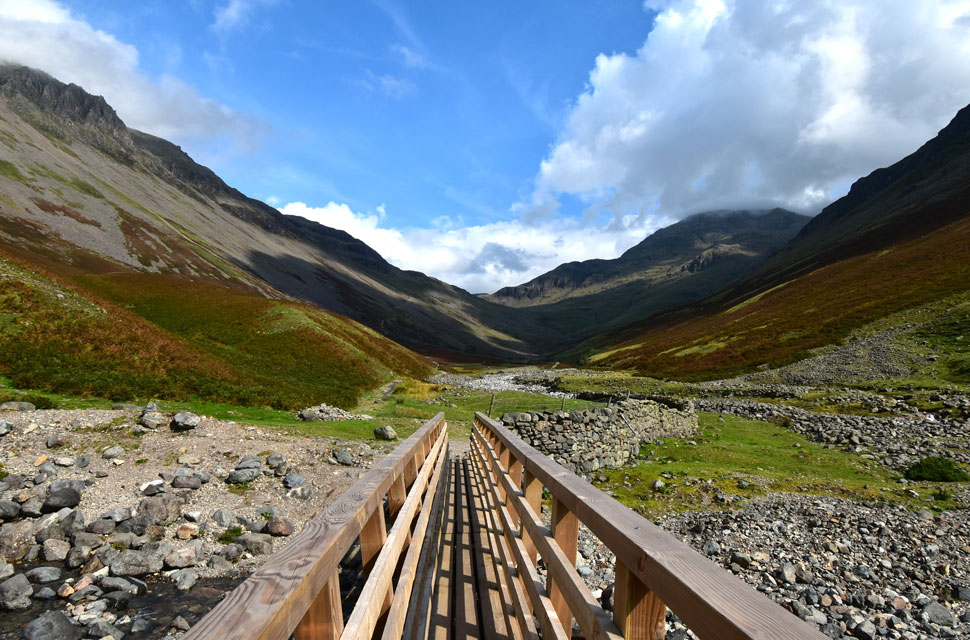 Looking back to Sty Head from the footbridge over Gable Beck. |