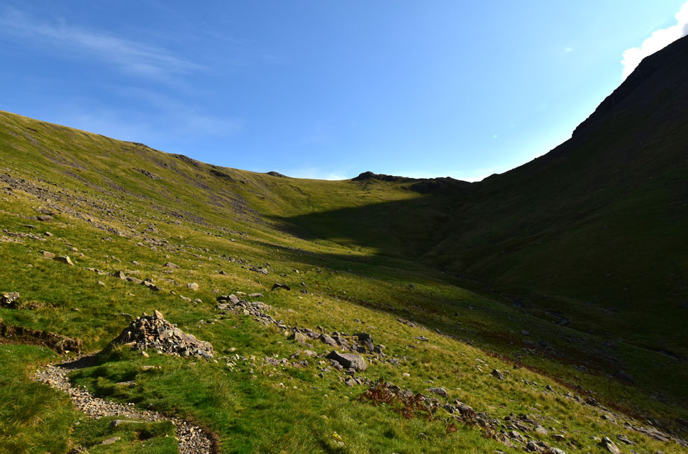 The top of Black Sail Pass from Gatherstone Head. |