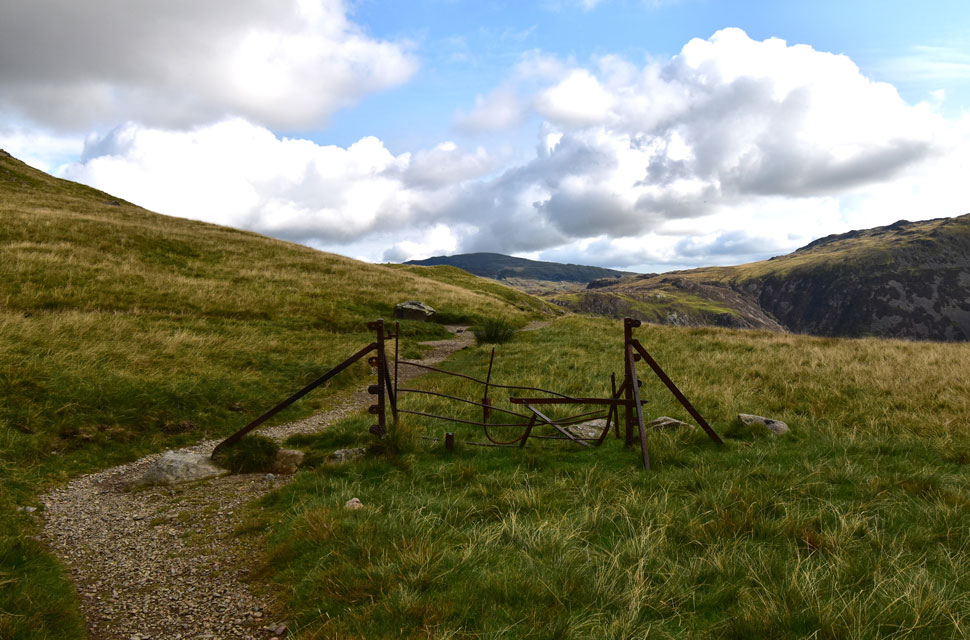 Old gate, top of Black Sail Pass with Brandreth and Fleetwith Pike beyond. |