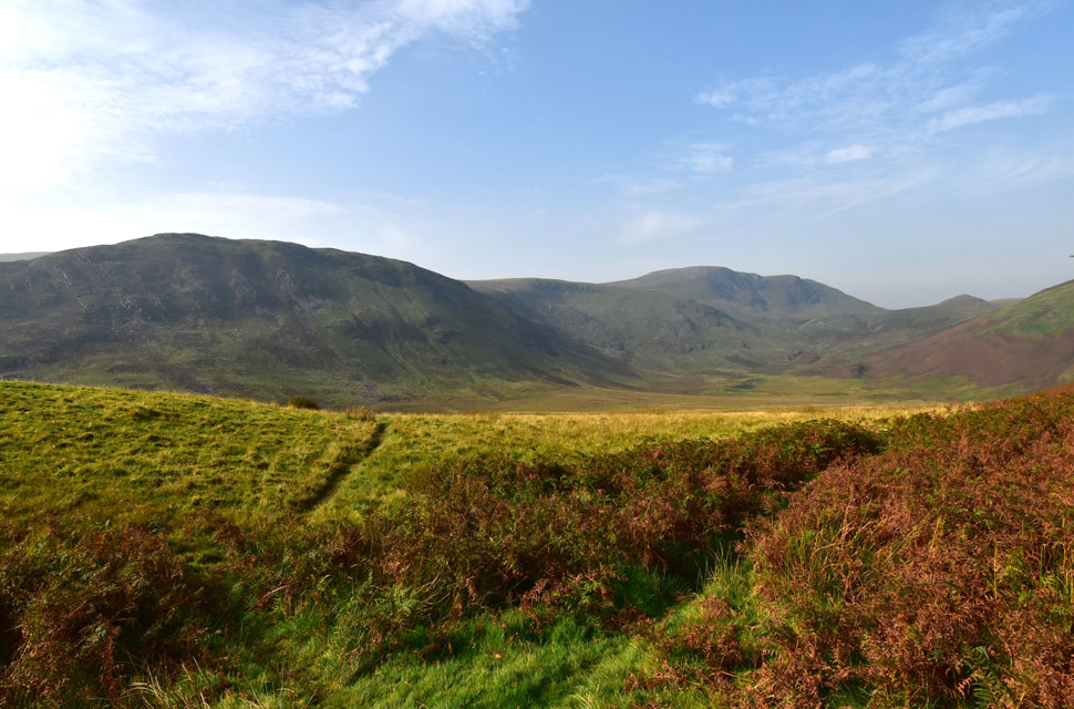 Looking over Whiteoak Moss towards Gale Fell (left) Great Borne and Floutern Cop (right) |
