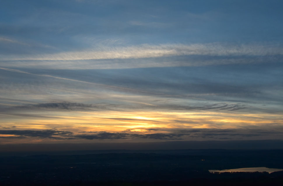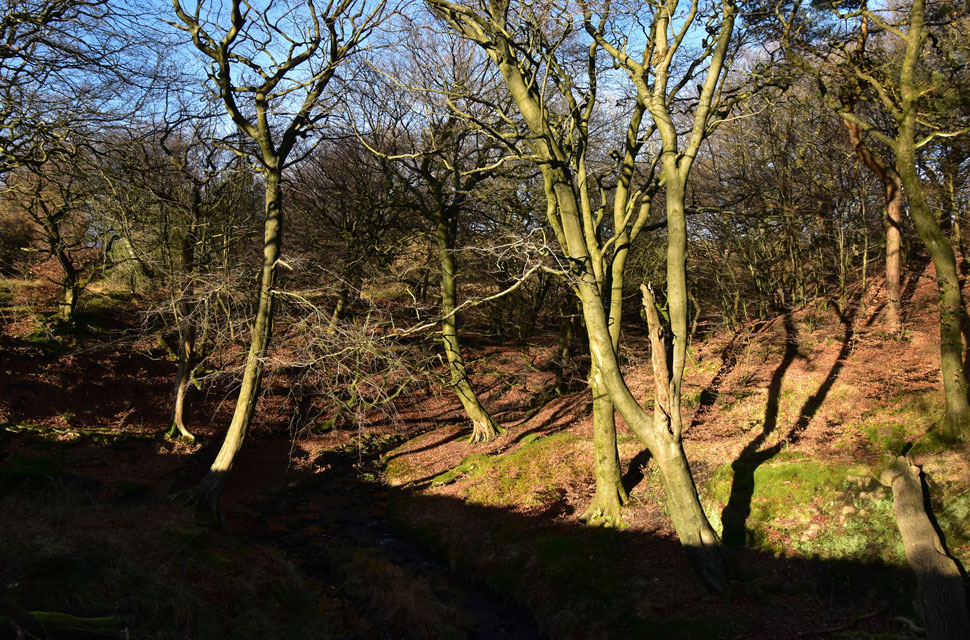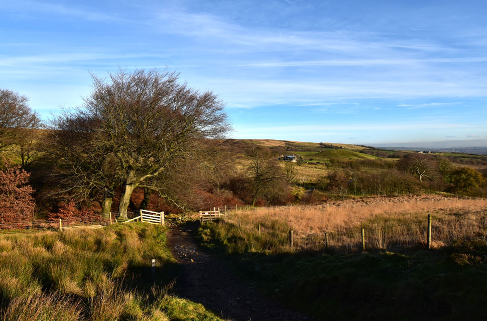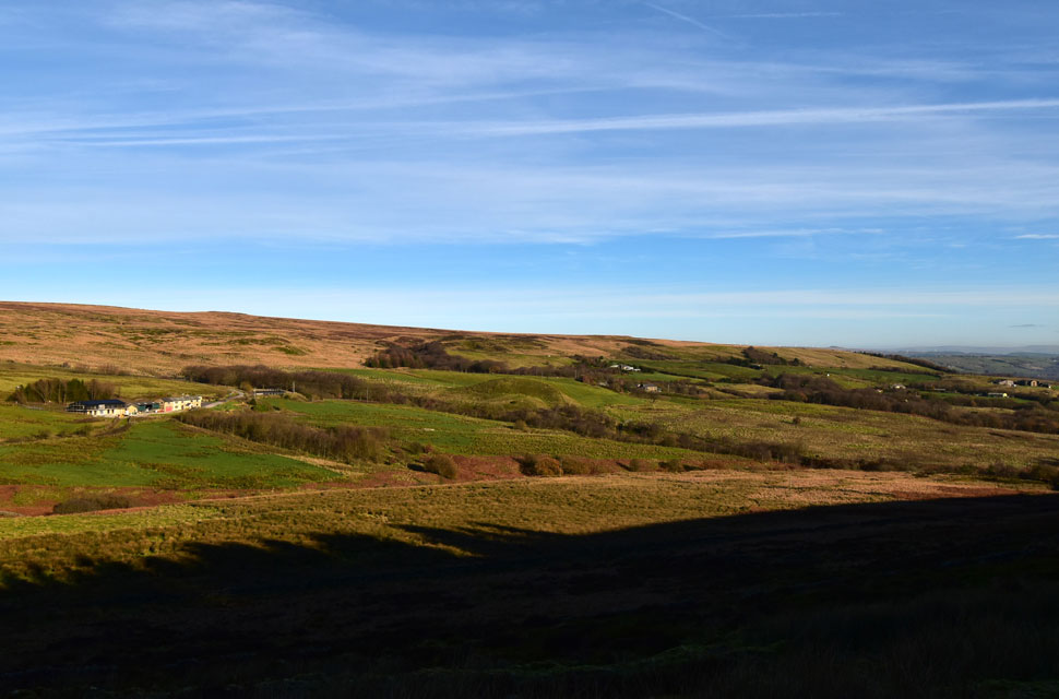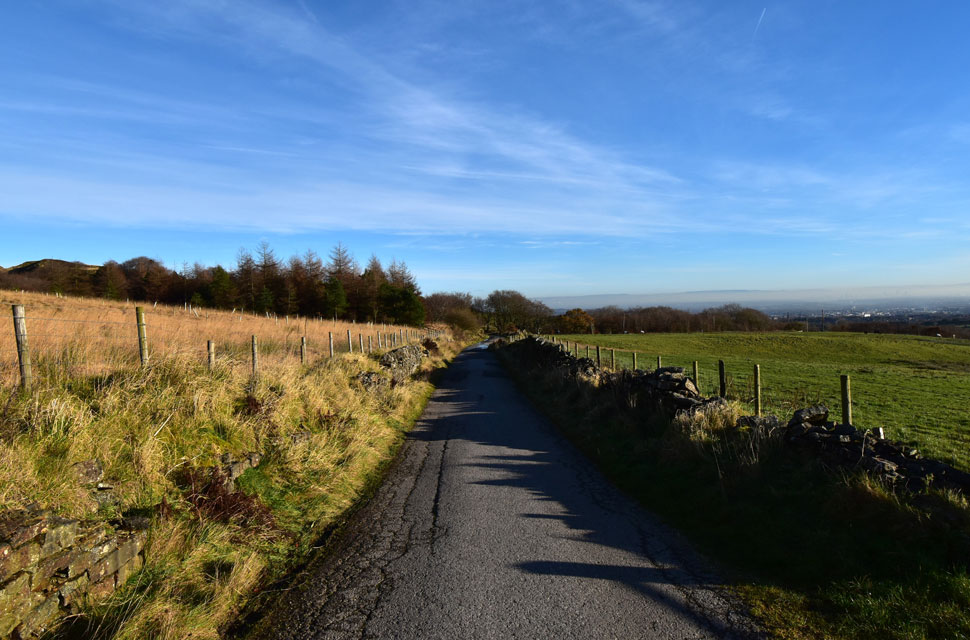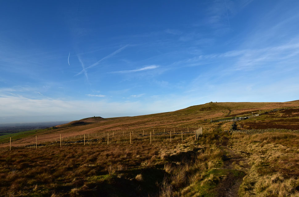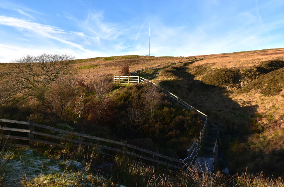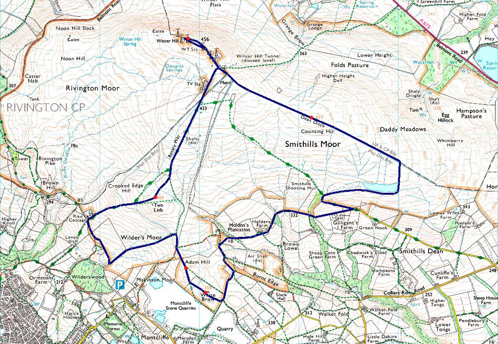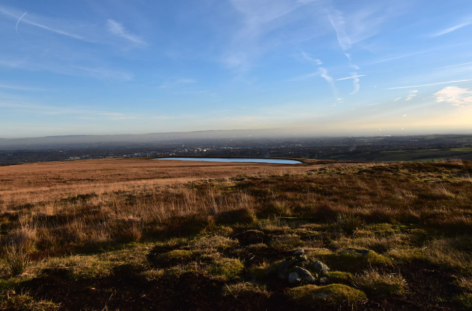 Now that I was parked nerves were settled, and given that I know I have a solid three hours before sunset, I was able to do the walk as planned, first making my way through Holden's Plantation to Dean Mills Reservoir before the gentle hike onto Counting Hill and Winter Hill, from where, if my timings are correct, I'll be walking back to Wilderswood facing this evening's sunset, if everything goes according to plan that is. I'd changed into my walking gear at work, so all that was left to do was throw on my Rab down jacket and shoulder my pack before making my way towards Rotary Way and Holden's Plantation. |