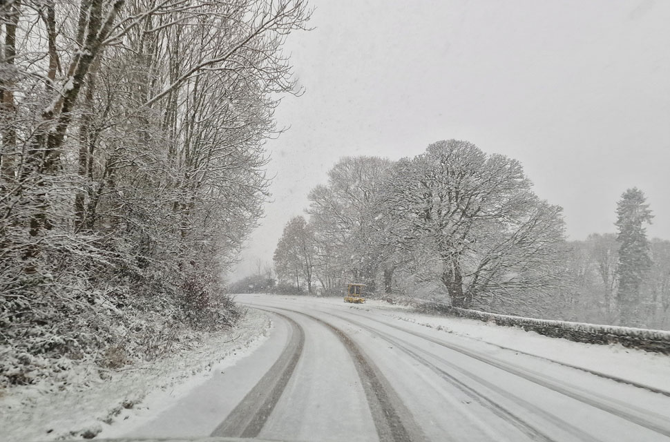 Just the odd car now, but more walkers than earlier, some already wearing spikes as they tramped up and down the pavement. I began to collapse my walking poles and noticed tmy right hand pole wouldn't collapse all the way which is probably the result of my fall earlier, bollocks jusy two weeks old. I soon reached my car where I kitted down and poured myself a cup of hot summer fruits from my flask. The road appeared clear, and seeing that I was facing the direction of Kirsktone Pass I left Patterdale passing Cow Bridge where I spotted more walkers returning to their cars. Even as I passed Brothers Water Inn, the Pass was clear. I noticed that it wasn't just 4x4's coming down but conventional two-wheel-drive vehicles too, so I decided to press on it being the shortest route home. Despite the Pass being open there are still roadworks, encountering two sets of temporary traffic lights where, amazingly, workers were still at it. Leading a pack of four cars, I passed through the first set of lights without any issues, but the second set, much higher-up where slush covered sections of the road-surface, and the higher I climbed I began to encounter more snow. Halted at the second set of lights , I set off. my car's front tyres struggling for traction but thankfully finding enough grip to see me over the Pass, where I stopped not far from the Kirkstone Inn to let the three cars behind me pass. The car directly behind me pulled in too, and I noticed two women inside.
