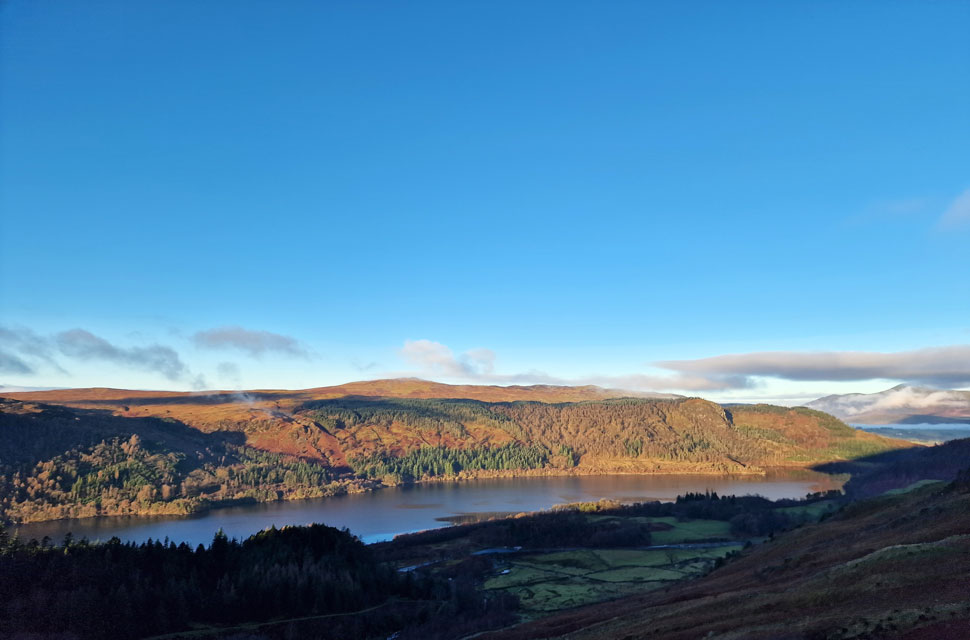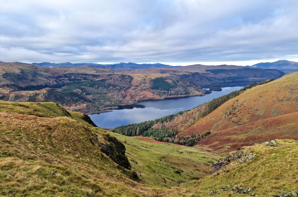 Views over Thirlmere towards Raven Crag, The Benn, Armboth Fell, High Tove, High Seat and Bleaberry Fell 8°C 9:30am |