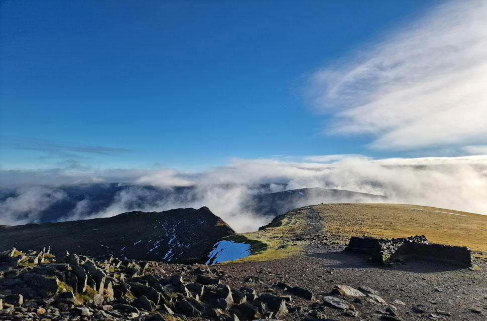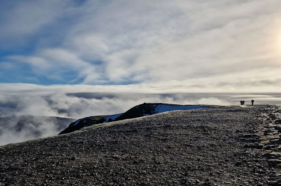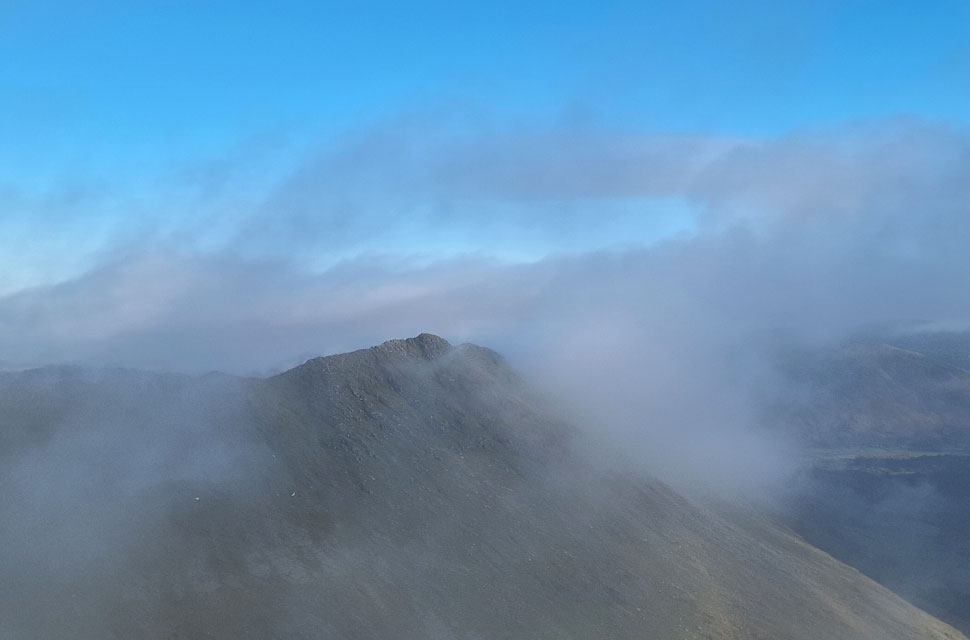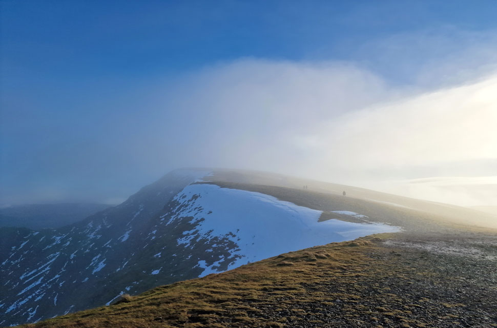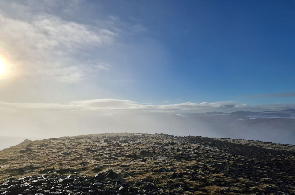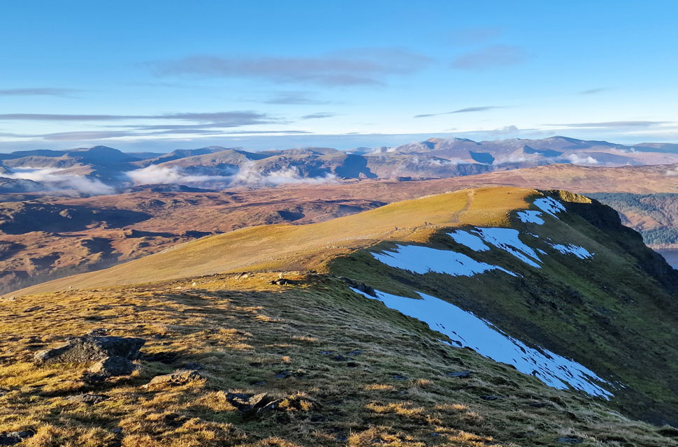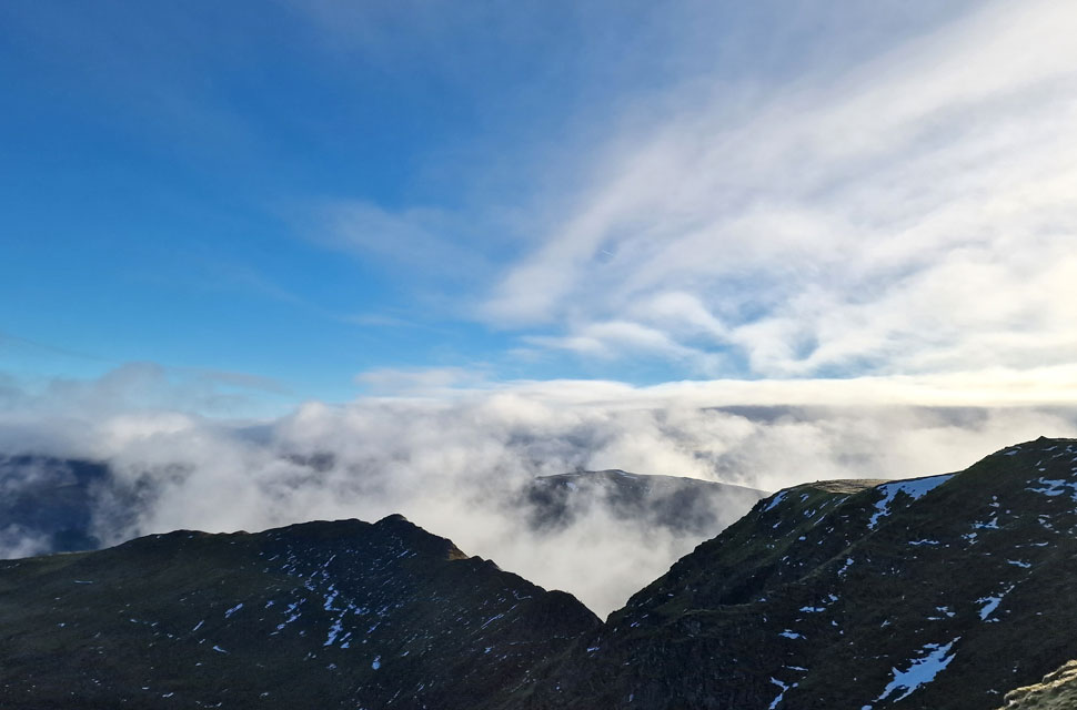 The sunlight was a blessing with summit temperatures lingering around freezing and with little to no wind it felt quite mild as I took in the views towards Lower Man wondering if I'll make its summit before the cloud arrives. |
