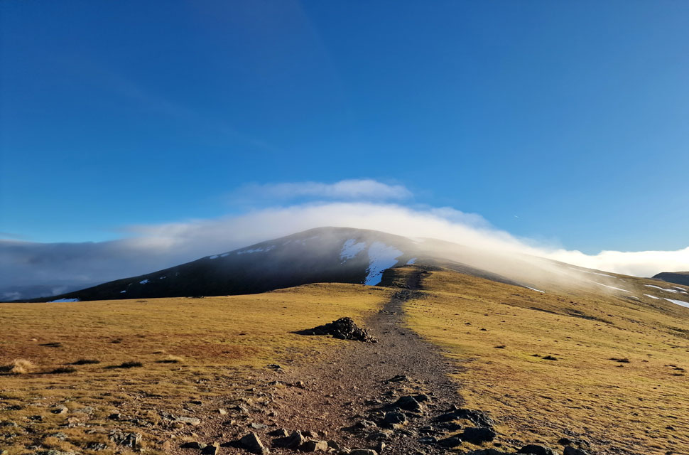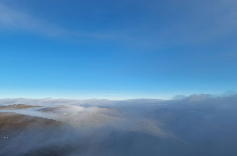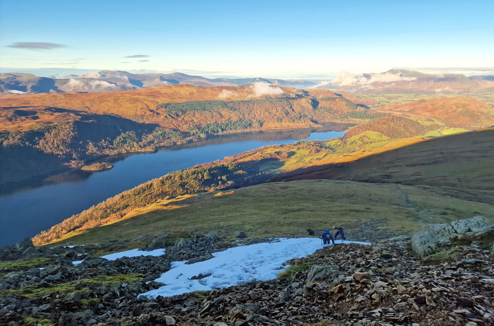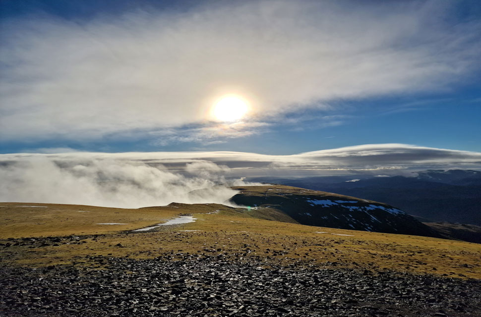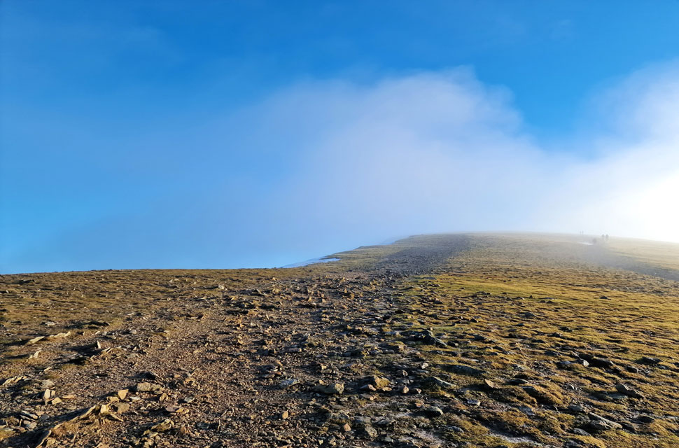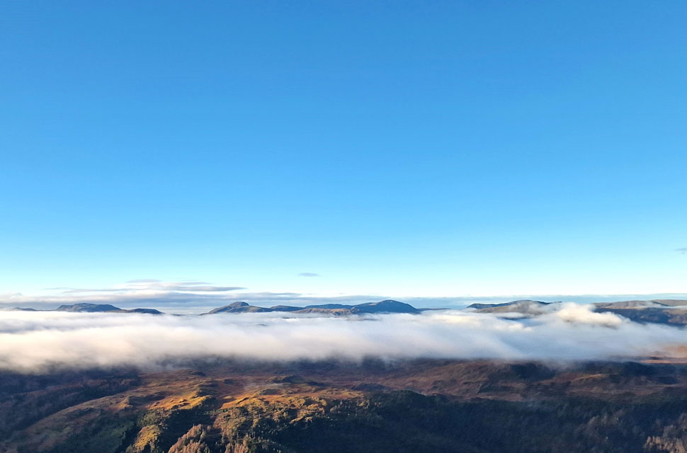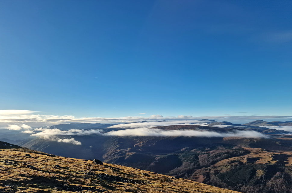 The sunlight was a blessing with summit temperatures lingering around freezing and with little to no wind it felt quite mild as I took in the views towards Lower Man wondering if I'll make its summit before the cloud arrives. |
